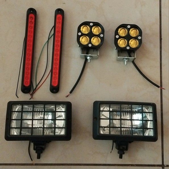 Selling these lights. New 3 inch led yellow pod lights flood beam. $45 2 blazer halogen off road spot lights they work good. $20 Two new 10" led red trailer lights they have bright and low mode. $20 Or take all for a great price.