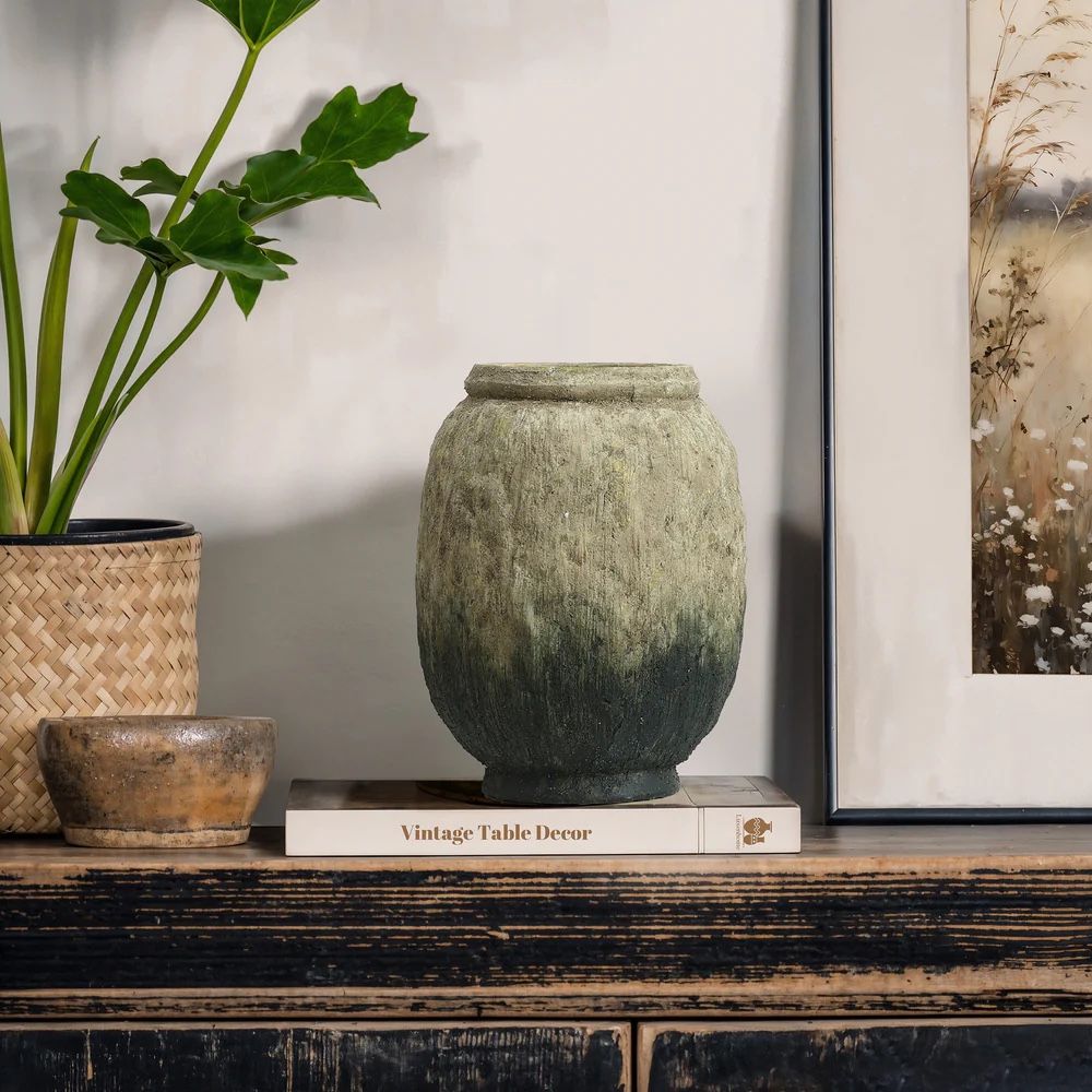 Product Overview Round Terracotta Vase- Rustic Elegance for Home and Garden This Round Terracotta Vase,handcrafted vase features a vintage design with earthy brown tones blending seamlessly into mossy green base. Made from high-quality terracotta, boasts a carefully aged texture ,weathered finish. The sturdy construction ensures durability, while the artisanal glaze finish brings a unique depth,individuality to each piece. Standing 10 '',Whether displayed as a decor accent indoors ,used as a garden feature, adds aesthetic charm, functional versatility to any space. Bring home this Round Terracotta Vase today and enjoy its timeless beauty. Shop now ! Rustic Design: adopts a rugged texture & antique glaze color with unique patterns, adding vintage charm. Size: 10″H × 7″W, inner dir 4.2″, top dia 5.3″. Stands securely on floors or display shelves. Versatile: fits dried floral branches, pampas grass,standalone decor. Ideal for stair landings, entryways. High Quality: Handmade from premium materials, showcasing distinctive textures and glaze variations. Easy Care: Dust gently with a dry cloth or duster. Not waterproof; for dried floral arrangements or indoor display only. Dimensions & Weight Overall Dimensions: 7.68'' W x 7.68'' D x 10.43'' H Product weight: 5.25 lb Material & Care Terracotta Care instruction: Wipe clean with a soft, wet cloth. Dry with air or a clean cloth. Use mild detergents and rub gently for tough spots.