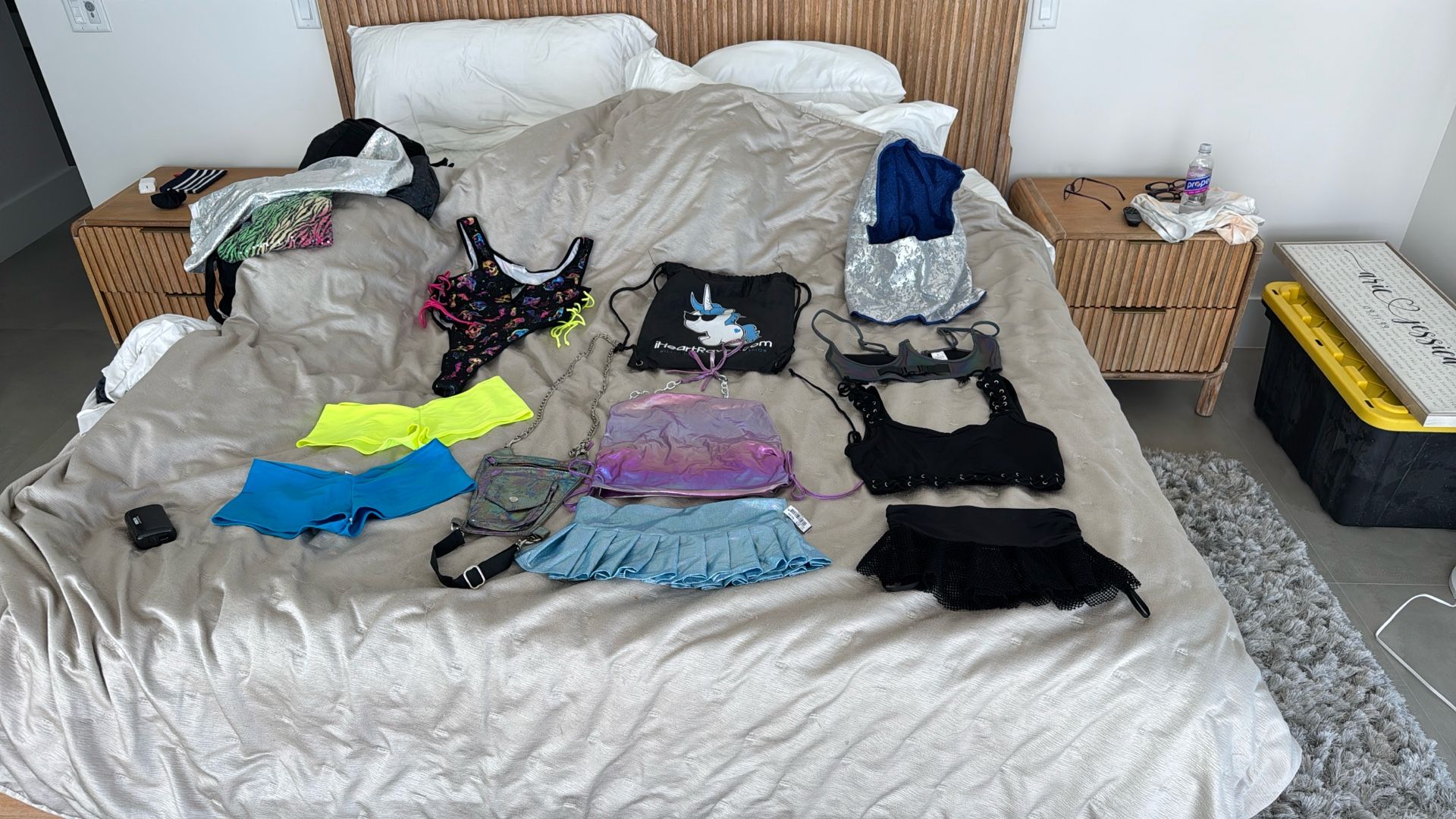 Never worn- most with tags still on. Size Small/ Medium. 11 pieces including thigh-wrap purse and bag.