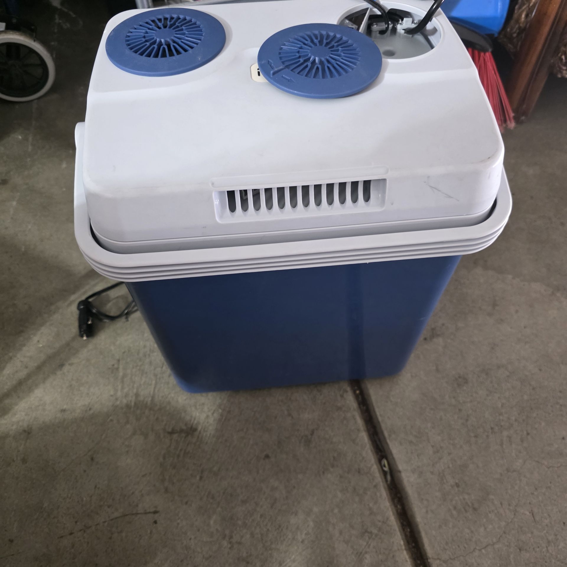 Portable electric cooler in great working condition. Runs on 12V car outlet or standard wall plug Lightweight and easy to carry Perfect for road trips, work, or keeping drinks cold Clean inside and works as it should Note: This is a thermoelectric cooler (cools below outside temperature), not a freezer.