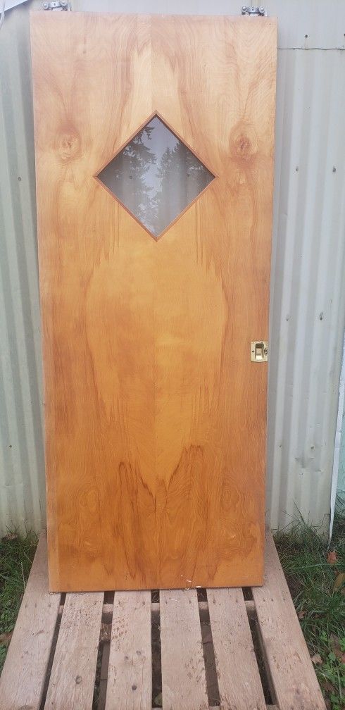 hollow core interior - 32x80, window, hardware - sliding - $20 solid core, heavy exterior door - 32x80, window, alarm connection. right hand inswing $50