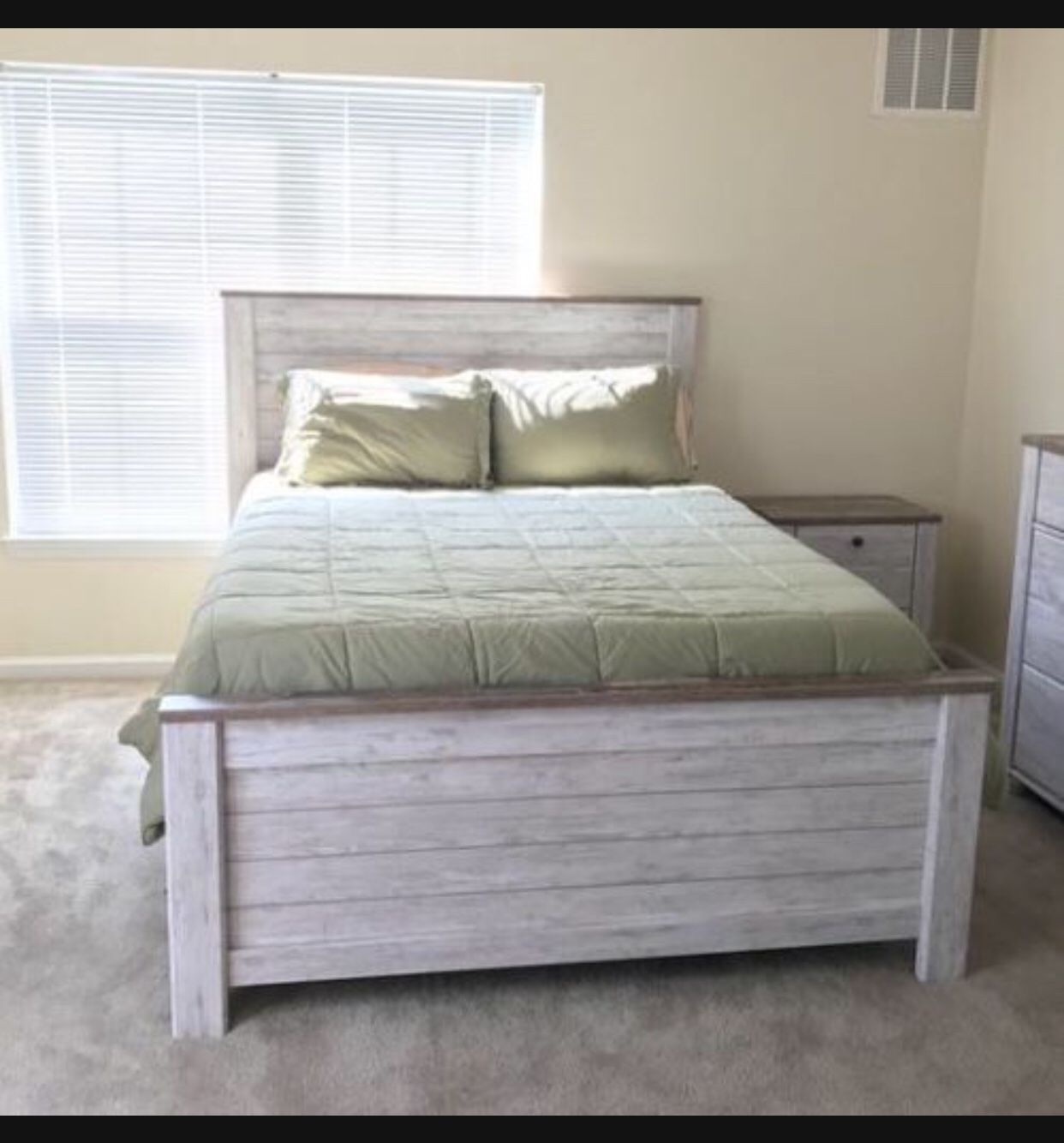 Ashley Signature Whitewashed Queen Panel Bed Willowton 🫵 New Brand 🤩 Fast Delivery💯 On Display🏠 Mattress Sold Separately !