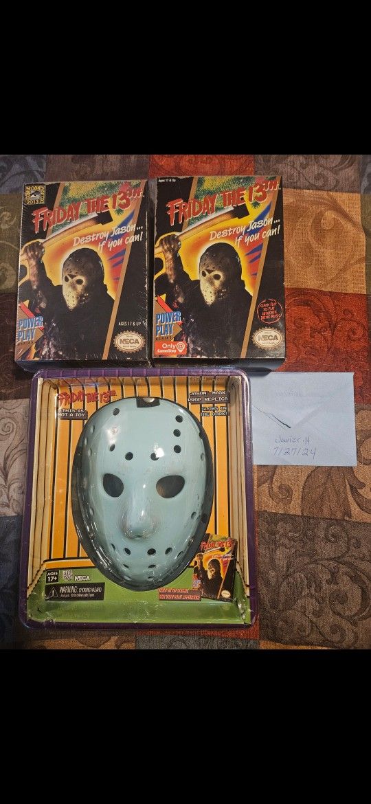 Neca and Mezco Friday the 13th Lot, take the whole Lot for $680. If you want jus one thing we can work out a price. Nes SDCC figure still sealed Nes Gamestop figure Nes Mask Neca Remake Mask With box Mask is signed by Ted White and Ken Kirzinger. Cinema of fear Part 6 figure signed by CJ Graham, case does have some yellowing. Cinema of fear Part 4 figure Cinema of fear Remake Figure Neca part 7 figure and Body Knockers Jason Scream Royal Bobbles Signed by Jack Quaid