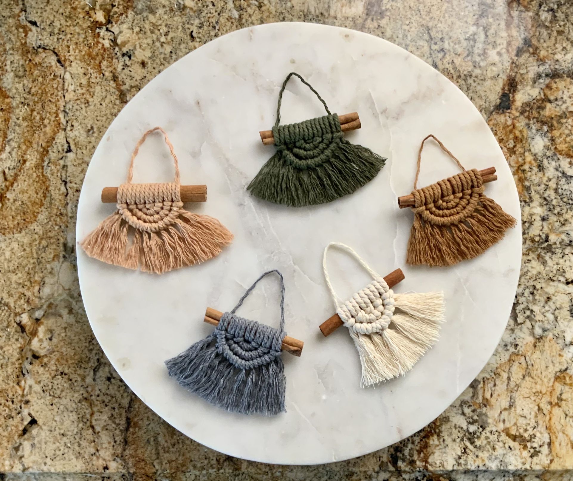 Macrame Christmas Ornaments On Cinnamon Sticks