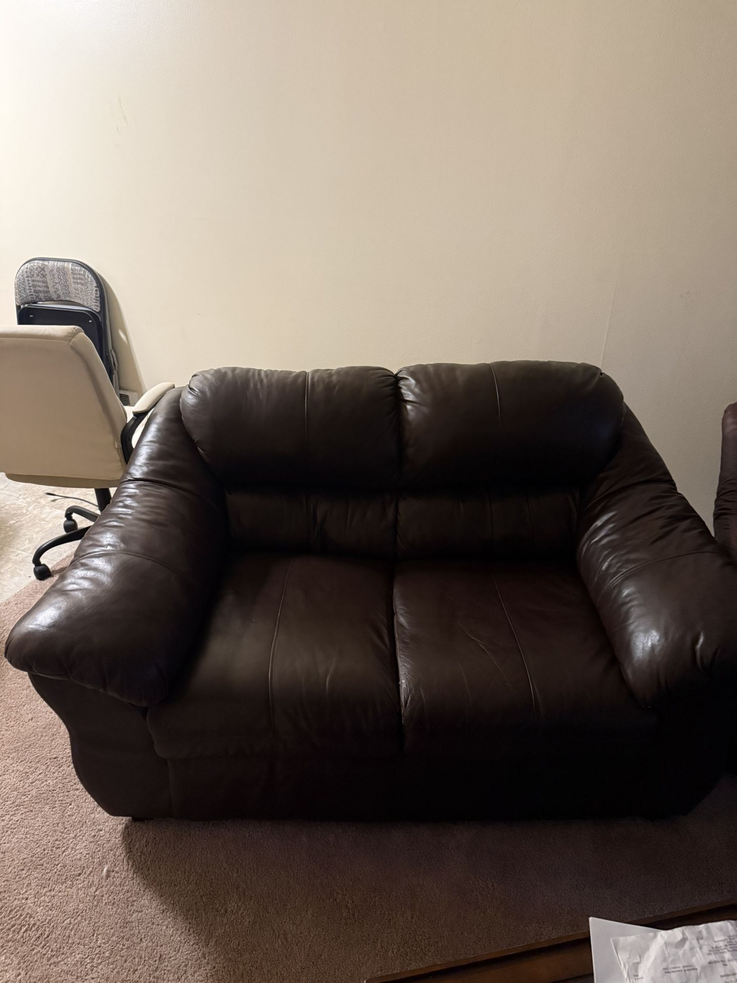 Brown leather Loveseat