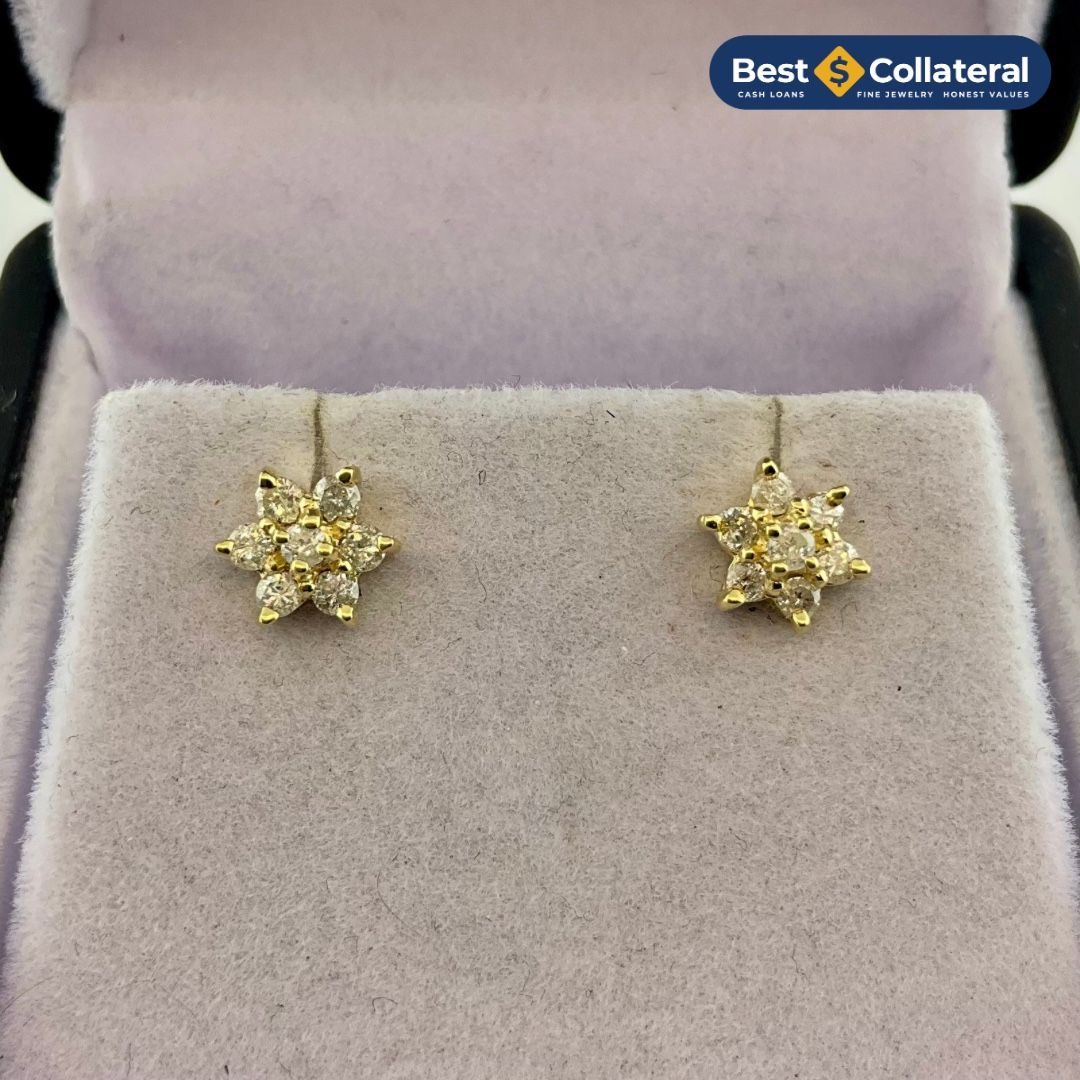 Available now! Diamond earrings in 14k gold! Weighs 1.1 grams and features .50 carats of diamonds! Only $429.99