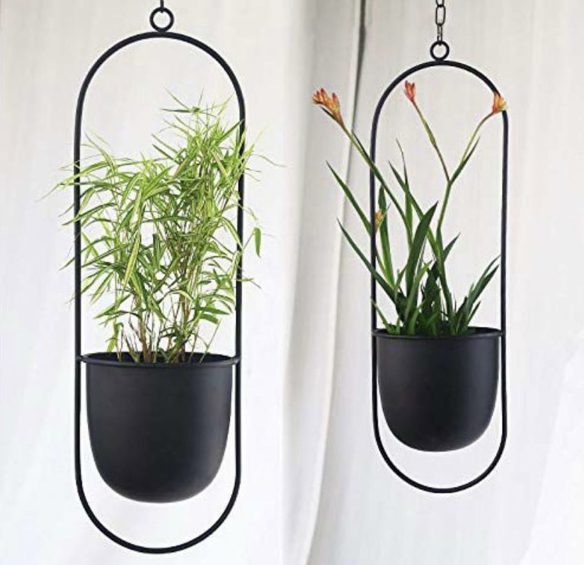 Sinolodo Metal Hanging Planters Boho Plant Hanger for Indoor Wall and Ceiling Hanging planters, Metal Black (Pack of 2, Black)