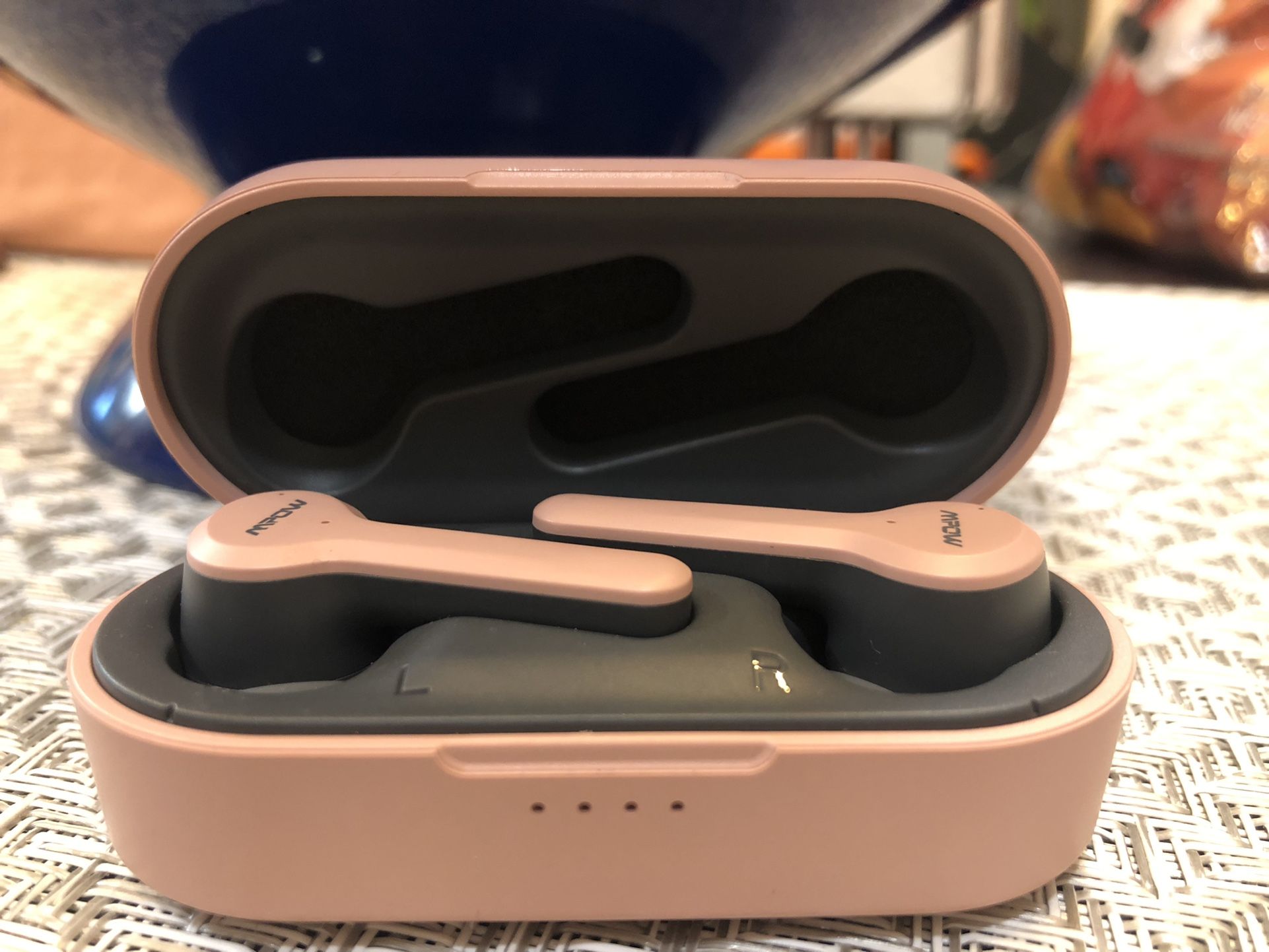 Brand new, bought it like 3 months ago and never used it. Pink MPOW Bluetooth noise cancelling Bluetooth ear buds with microphone Touch control Bluetooth 5.0 Clear and crisp sound quality 4-mic noise cancelling Works great for Skype calls, team calls on computer or phone