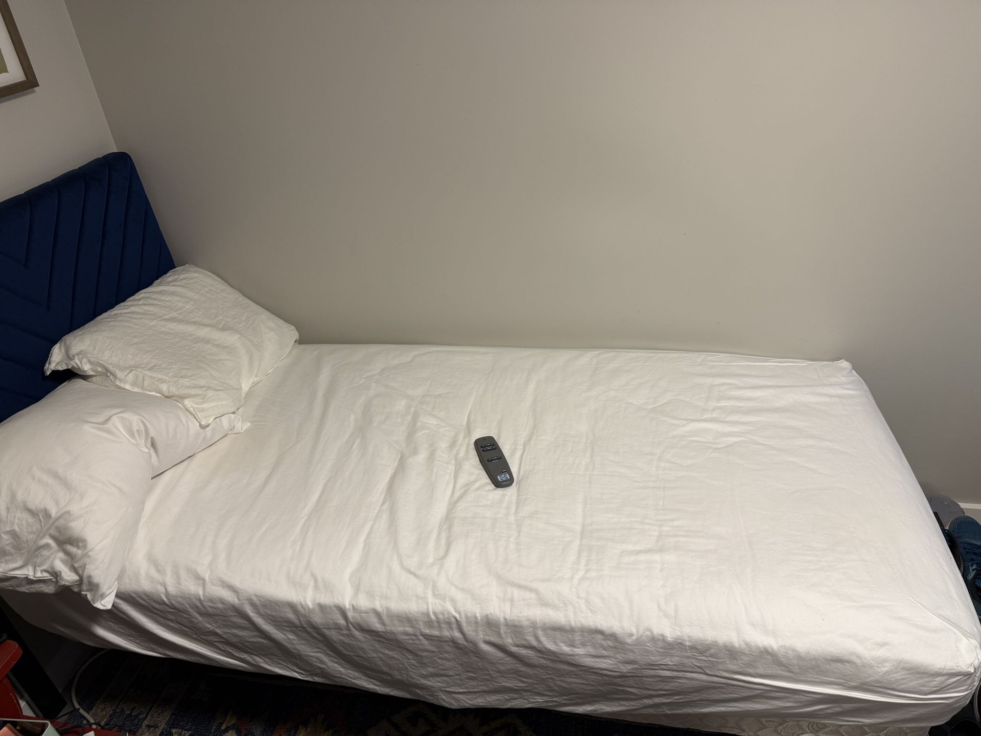Twin bed adjustable with mattress. Headboard included. Pick up only. Item is heavy. No trades accepted. $75 obo.