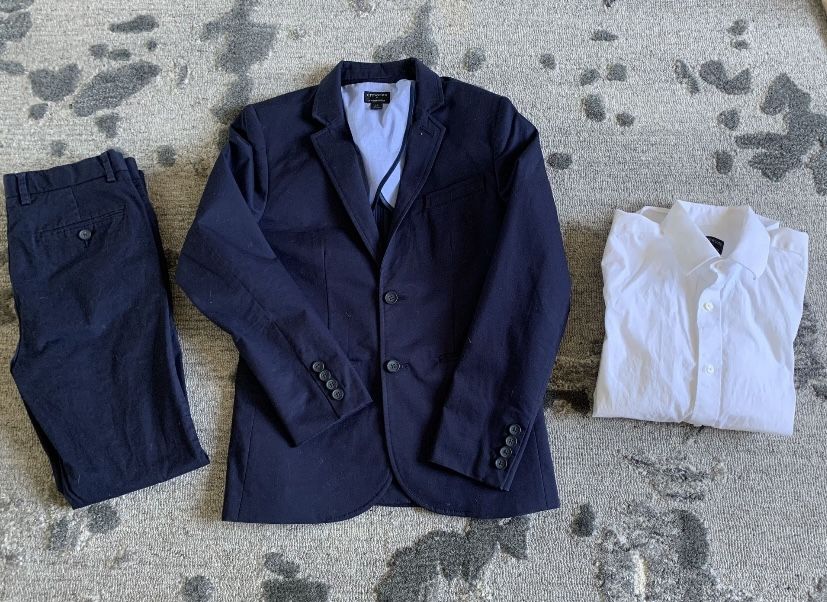 J Crew Suit Pants Navy Blue And White Shirt
