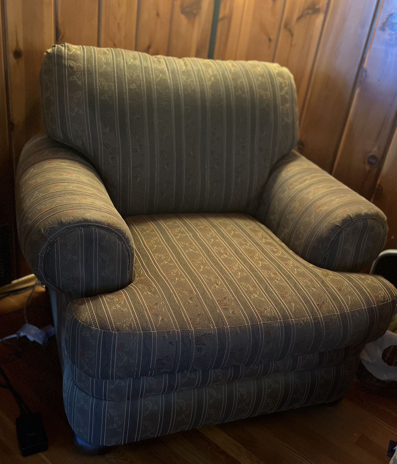 Oversized arm chair, ottoman, 2 matching pillows. Must take all. Very sturdy frame, has been well loved, with washable covers for arms, headrest & foot. Pet free living area. New chair came today so pick up ASAP appreciated. By west side of SDSU.