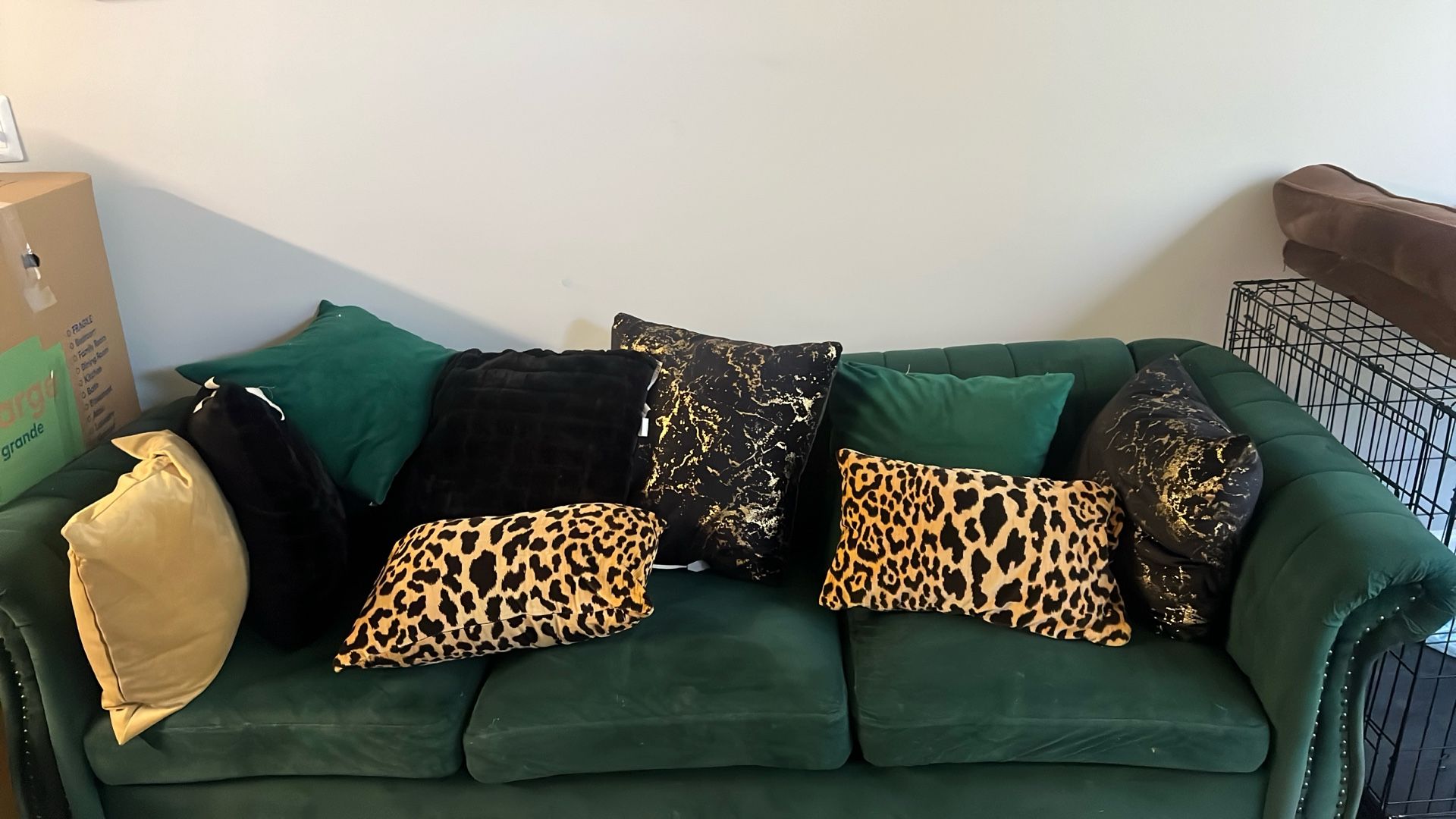 Green Couch Smoke Free Clean And 2 Black Chairs