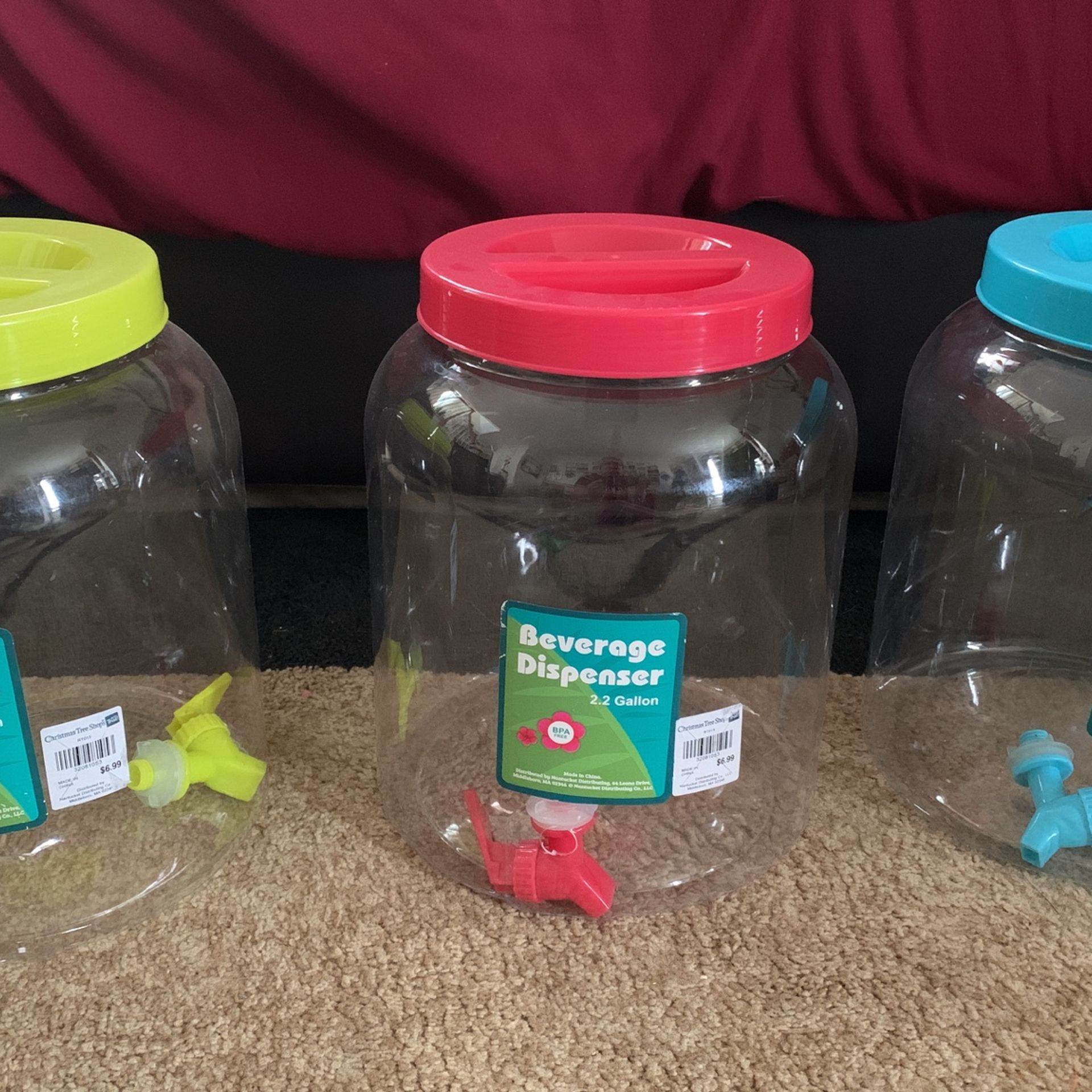 Dispensador de bebidas de 2,2 galones plásticas. En buenas condiciones. Para uso en el hogar ó eventos familiares al aire libre. 2.2 gallon plastic beverage dispenser. In good condition. For home use or outdoor family events