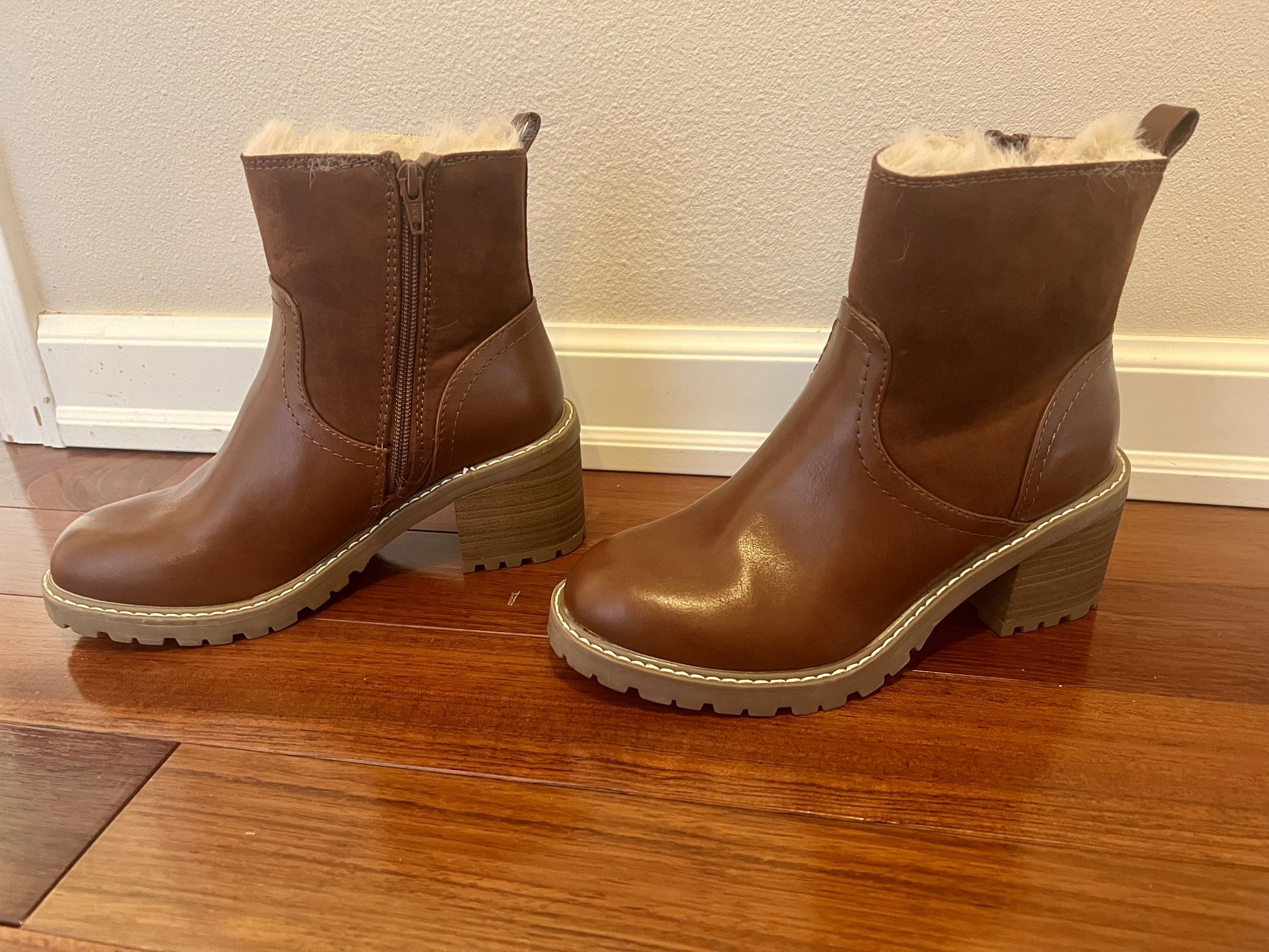 Universal Thread Brand | Lug Sole Boots with Faux Fur Accent inside. Zip-up, Size 6