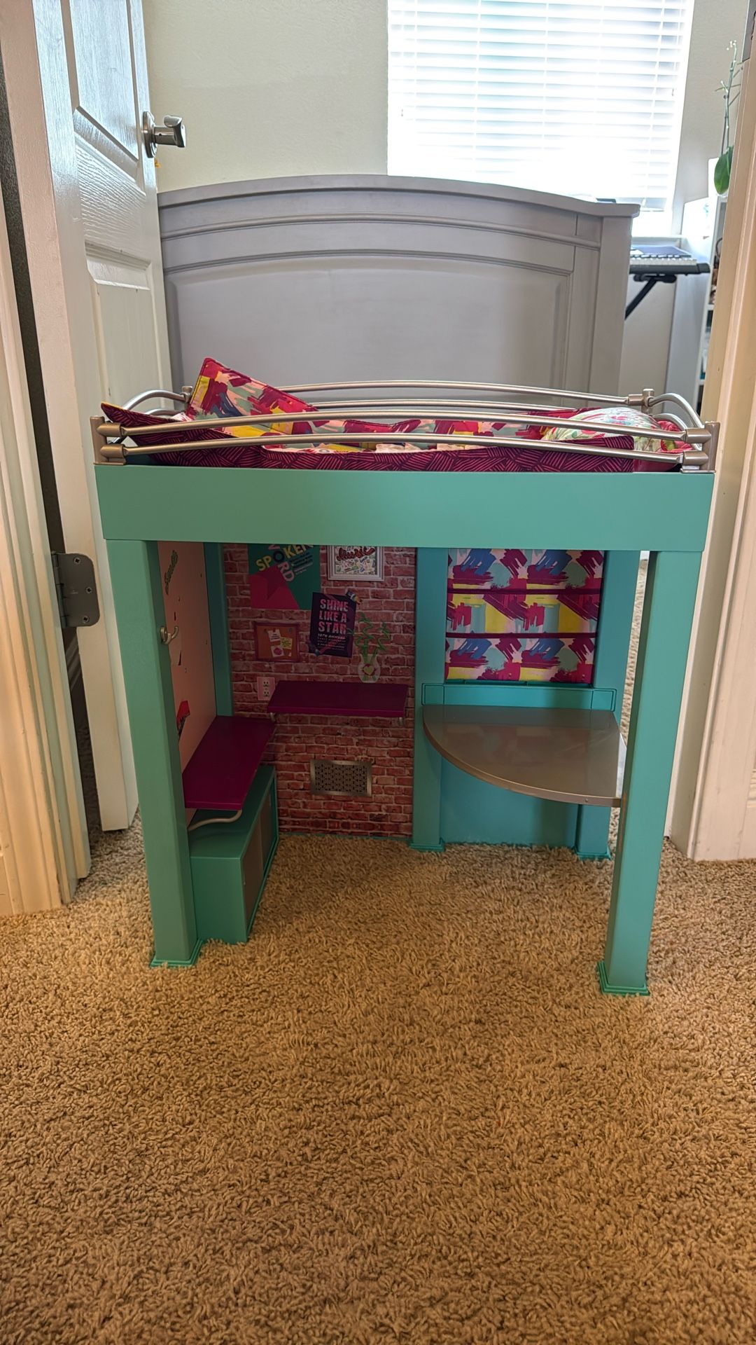 Doll bunk bed with desk area.
