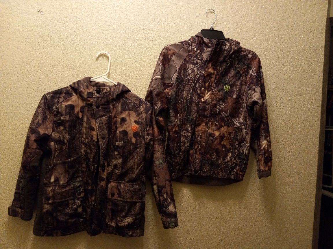On the left youth small on the right youth M. Bought at Bass Pro. Quality material. Water proof. Front closes with zipper, velcro and snaps (yes all 3!). The Med is lined with mesh and small with a warm material. Meet at HEB HH 15 each