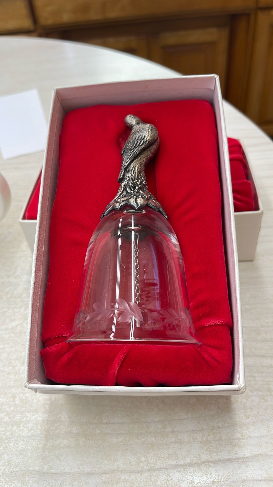 1976 Franklin Mint crystal bell with pewter dove handle. No chips or cracks, original box $25 OBO