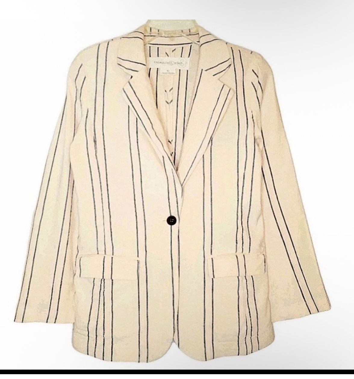 Treasure & Bond Cream Linen Blend Striped Blazer
