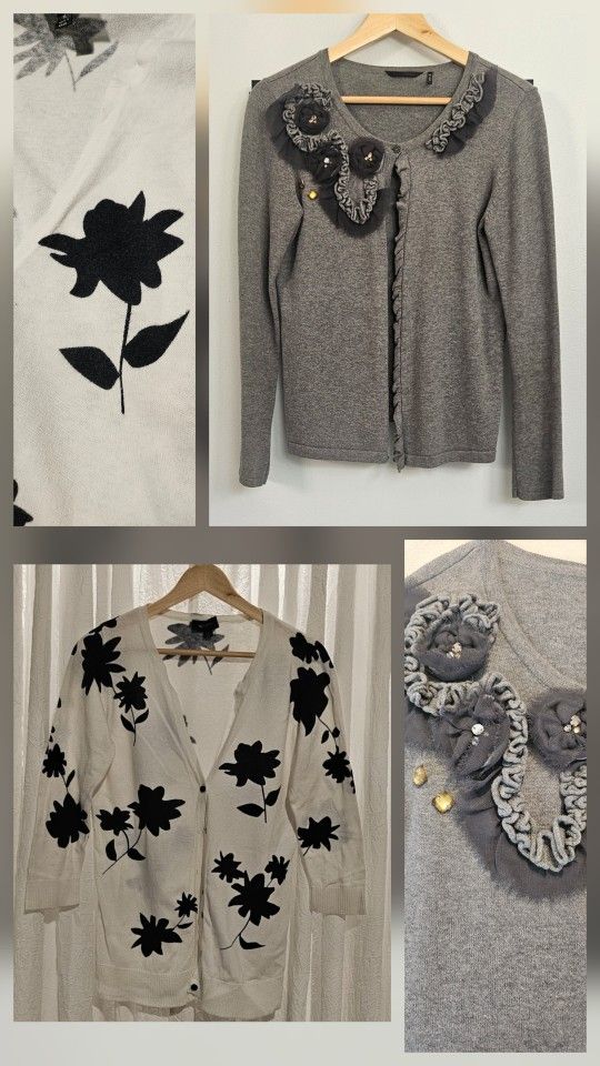 Grey ruffle shifon cardigan - M - $7 White & Black flowered cardigan - M - $7