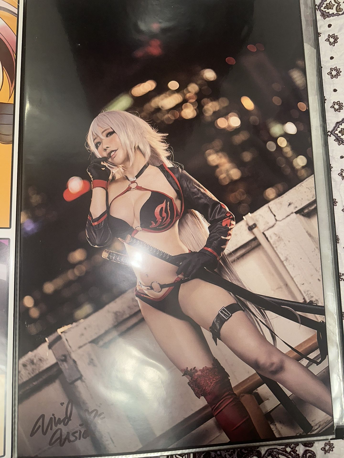 Signed print 11x17 of Cosplayer Vivid Vision in her Jeanne d'Arc Alter “Jalter” Summer Cosplay from the Fate Grand Order FGO Series The signature is real and was signed at a convention by Vivid herself. Any questions feel free to ask