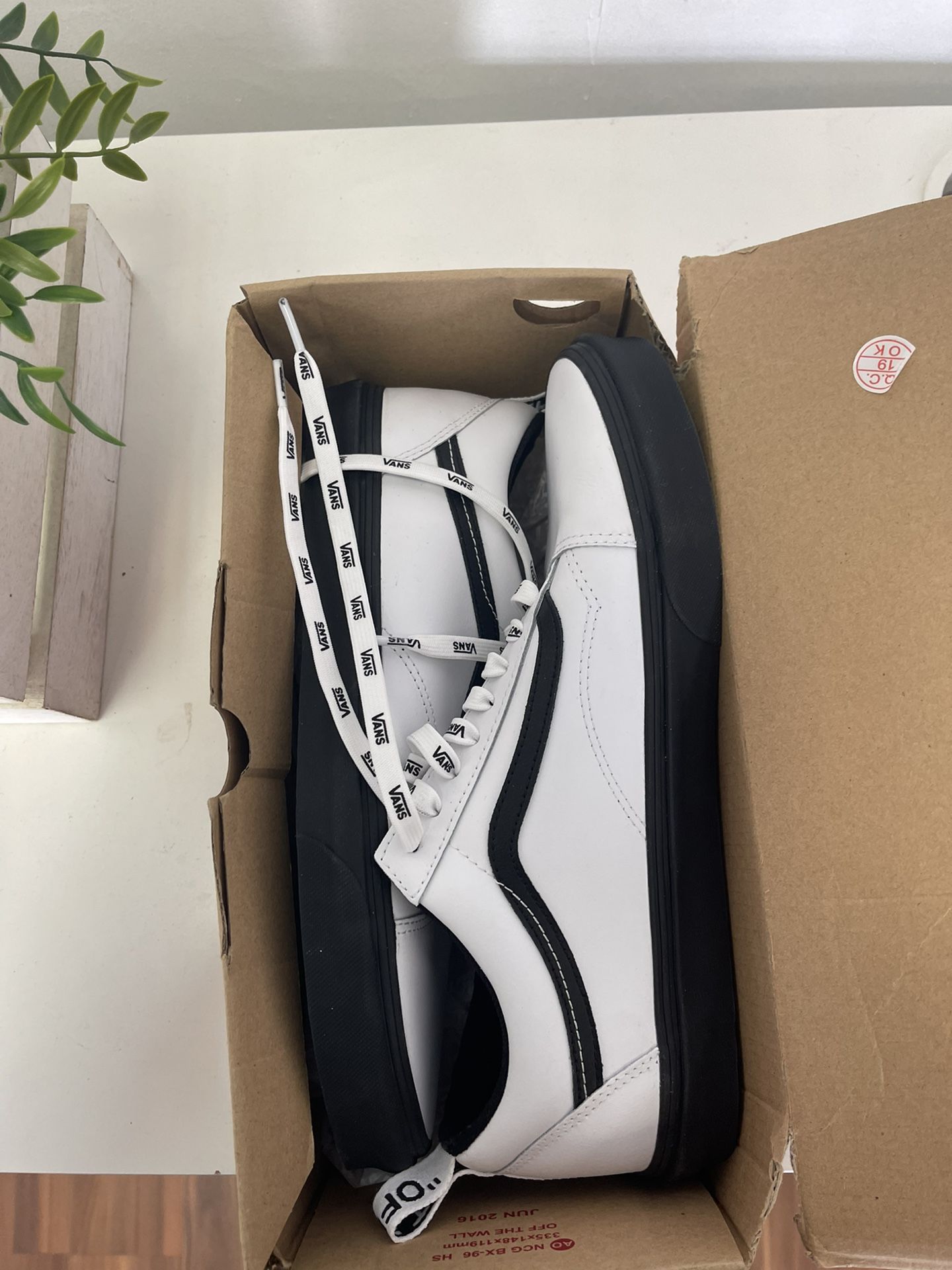 Brand new vans never warn , true white size 12 .