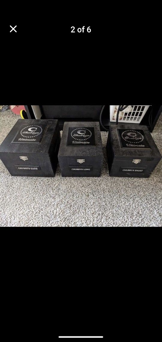 For Sale: Lot of 3 Chubby cigar boxes 1. Chubby Long box 2. Chubby Gato box 3. Chubby short box Not sure, what wood they're made of. My guess is pine. Rough outside texture. Excellent condition, in and out of the box. Selling all 3 only. Asking $30 for all 3, or best offer. I'll bring them to you if you're local, for an extra $5. Meetup in town or pickup at my apartment complex in Ridley.