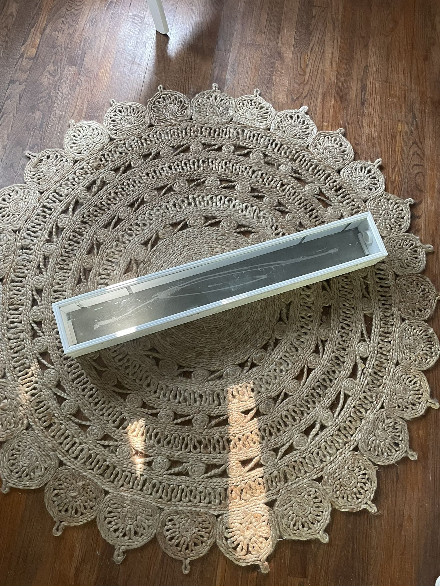 IKEA’s White display case with glass door that opens and closes. Can be displayed on a wall, there is hooks on the back of case. Display case is mainly wood and the door is glass. Please see photos for measurements.