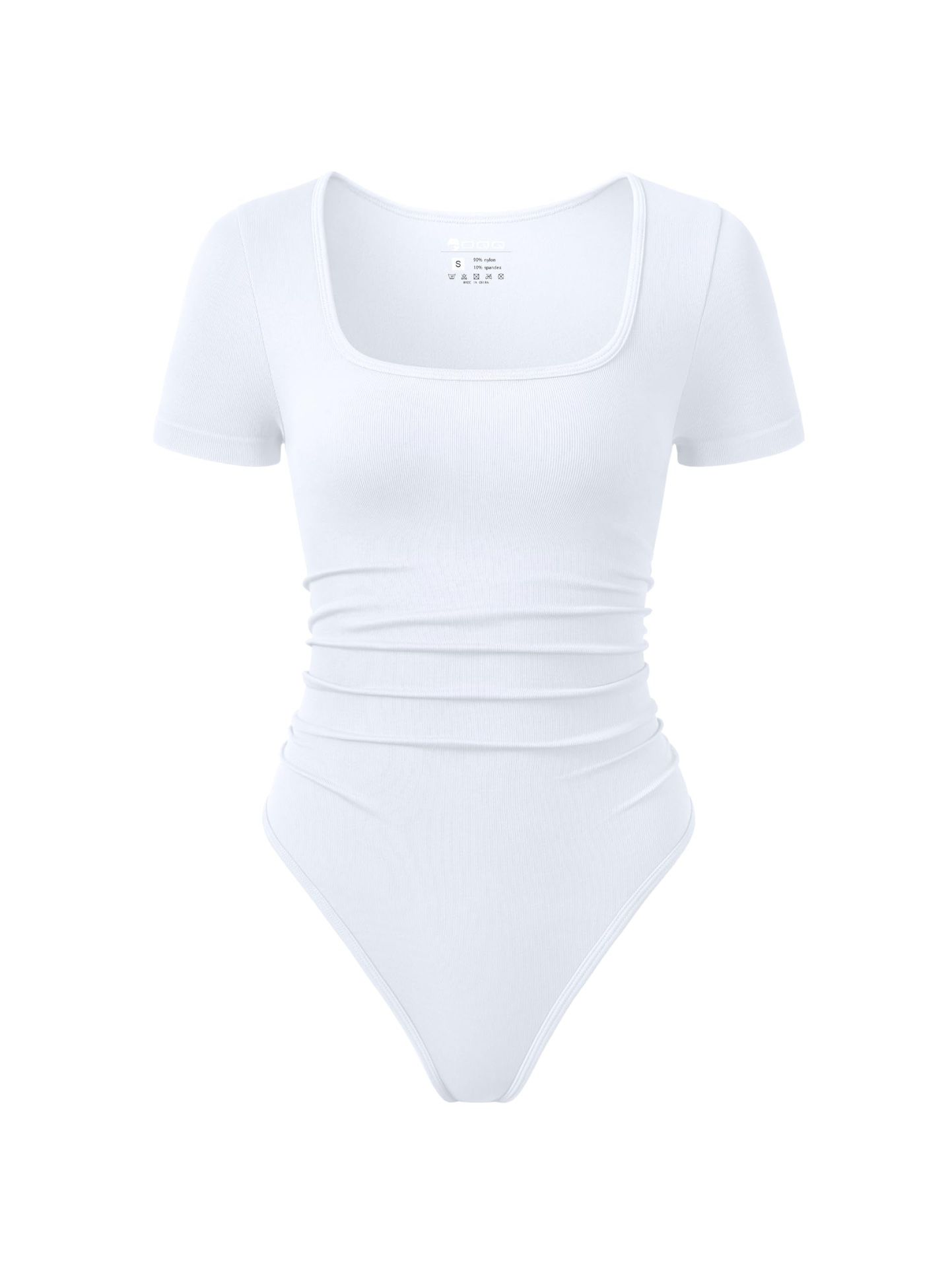 OQQ Women Bodysuits Ruched Short Sleeve Square Neck Stretch Lounge Travel Bodysuits White M