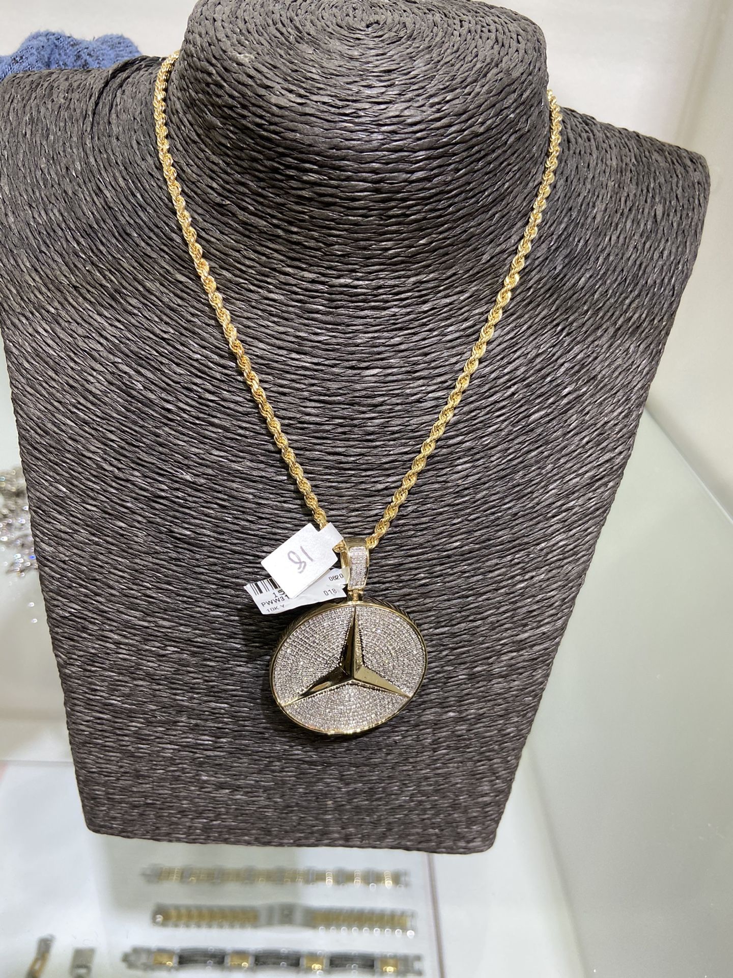 10k SOLID gold rope chain and diamond pendant combo for a good price!!