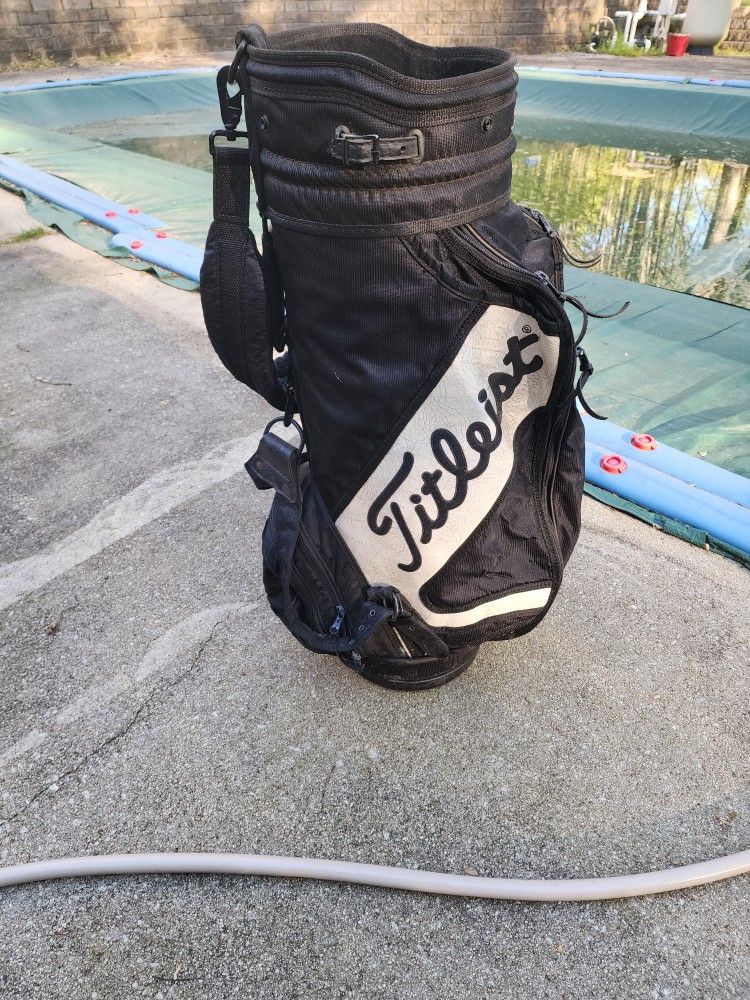 Used Titleist golf bag. In good condition. Very large bag and all of the zippers work. Just recently cleaned and shined looks almost new