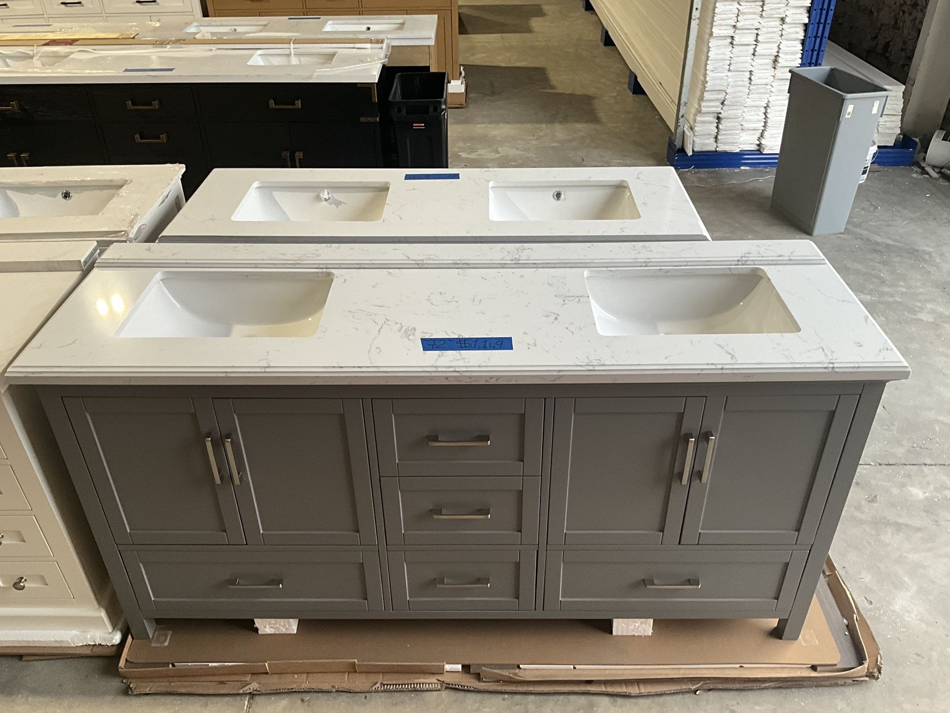 72” Bathroom Vanity in grey , double sink soft close solid wood with vanity top in white $1149 Luke’s liquidations warehouse Address: 2434 N Forsyt