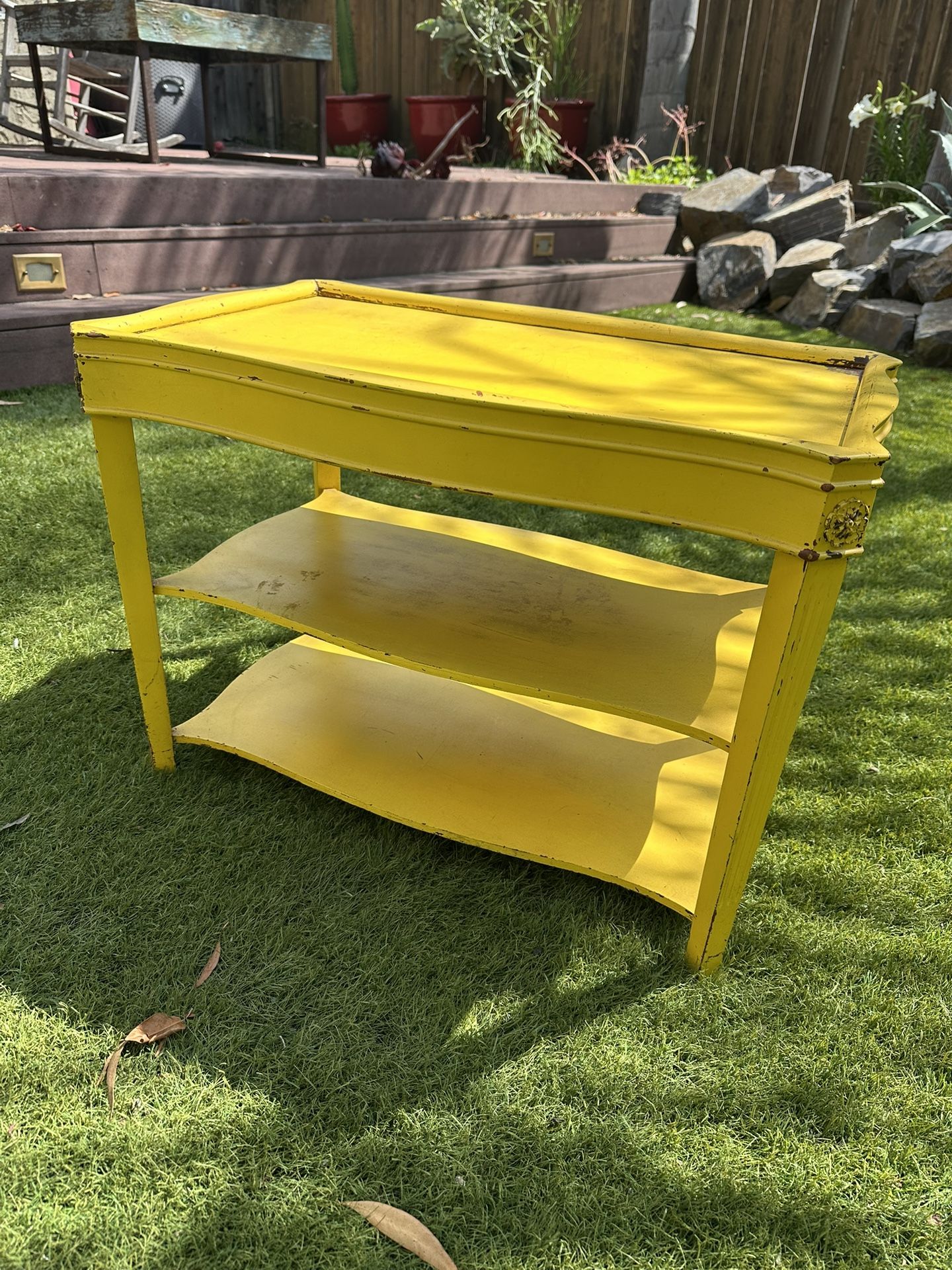 Vintage Canary Yellow Shabby Chic Sturdy Wood Side Table / Nightstand With 2 Shelves