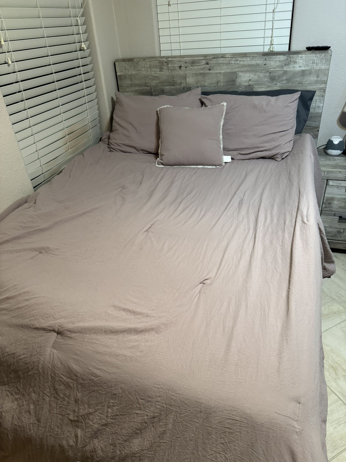 Dusty mauve color, soft and fluffy.. ONLY COMFORTER, 2 SHAMS AND THROW PILLOW