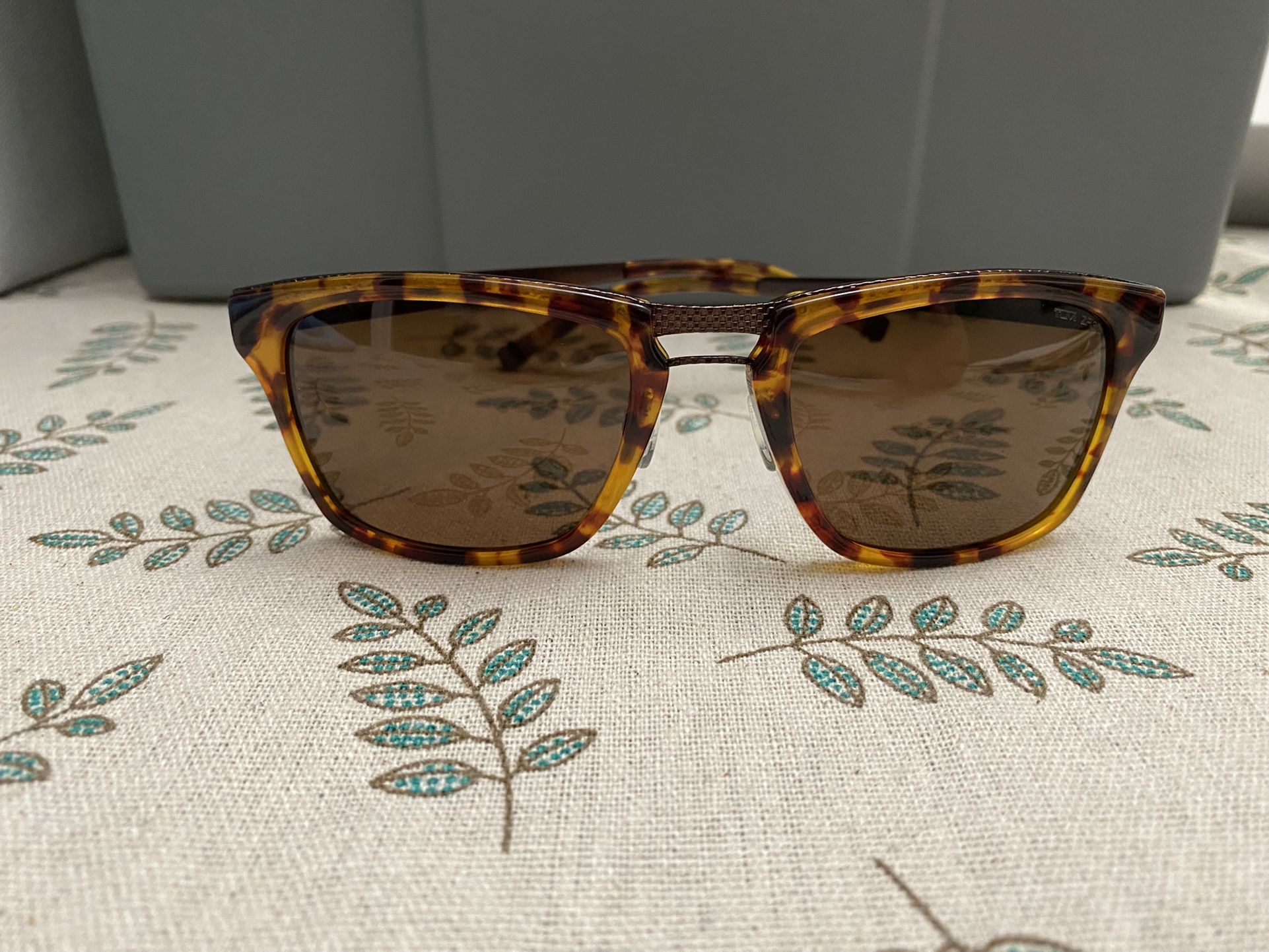 Tumi Bolte tortoise shell accents on chocolate metal frame with Zeiss brown polarized lenses. This is as beautiful on your face as in these pictures. The tortoise shell accented frame is what will catch your eyes and others while you wear them. The metal frame allows them to have nose pads to guarantee a great fit like no other wayfarer. Originally $295. Comes with original packaging and cool ballistic Alpha nylon covered magnetic sunglass case.