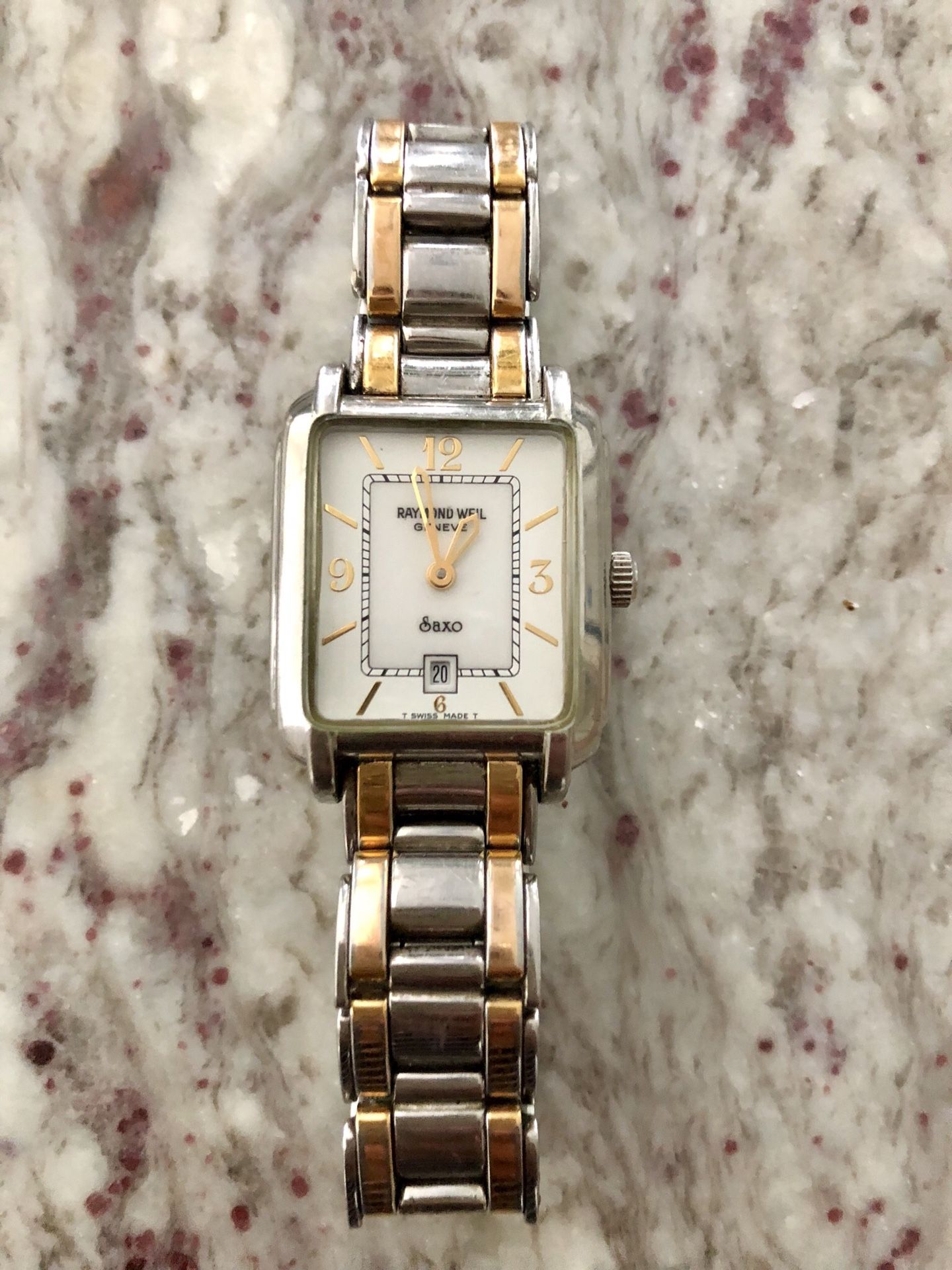Beautiful Raymond Weil Women’s two tone Stainless with gold bracelet watch. Water resistant, Swiss made, crystal sapphire face. Retails New for $800.