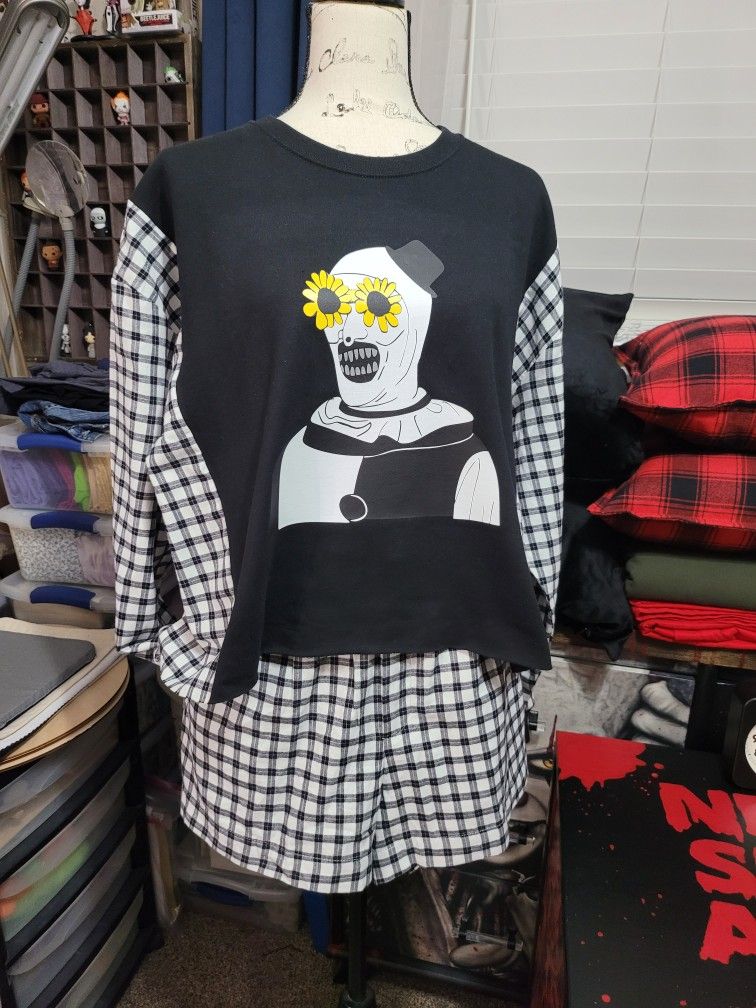 Upcycled Oversized Cropped Horror PJ's. New. odor free. No stains. Non-smoking home. No pets. Approximate size is an L-XL 60.00