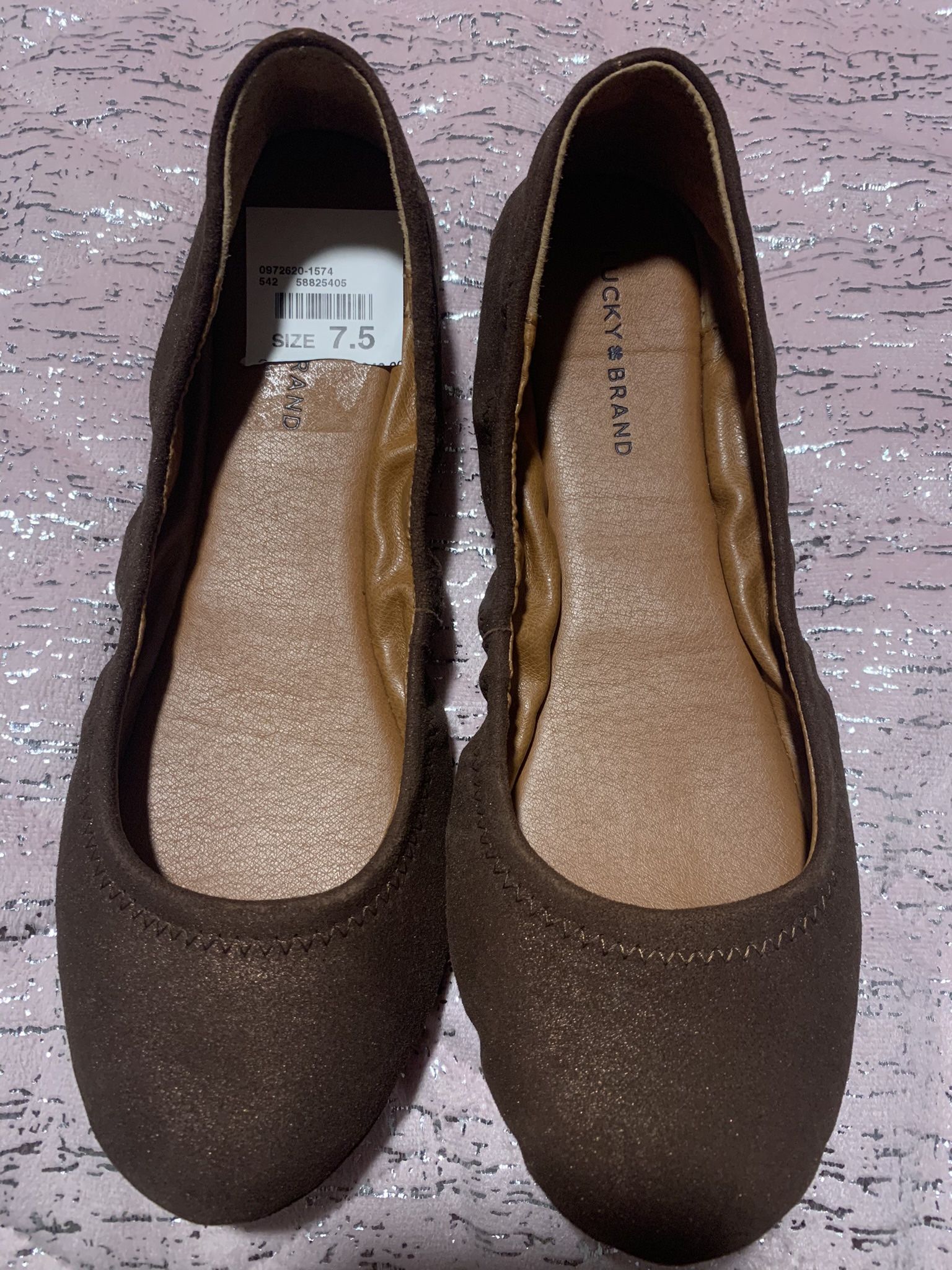 Womens Size 7.5 Lucky Brand Brown Sparkly Flats