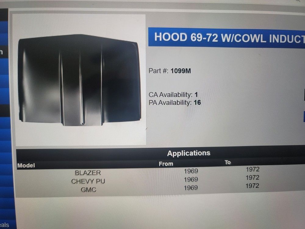 69-72 C10 K5 Cowl Hood 2"