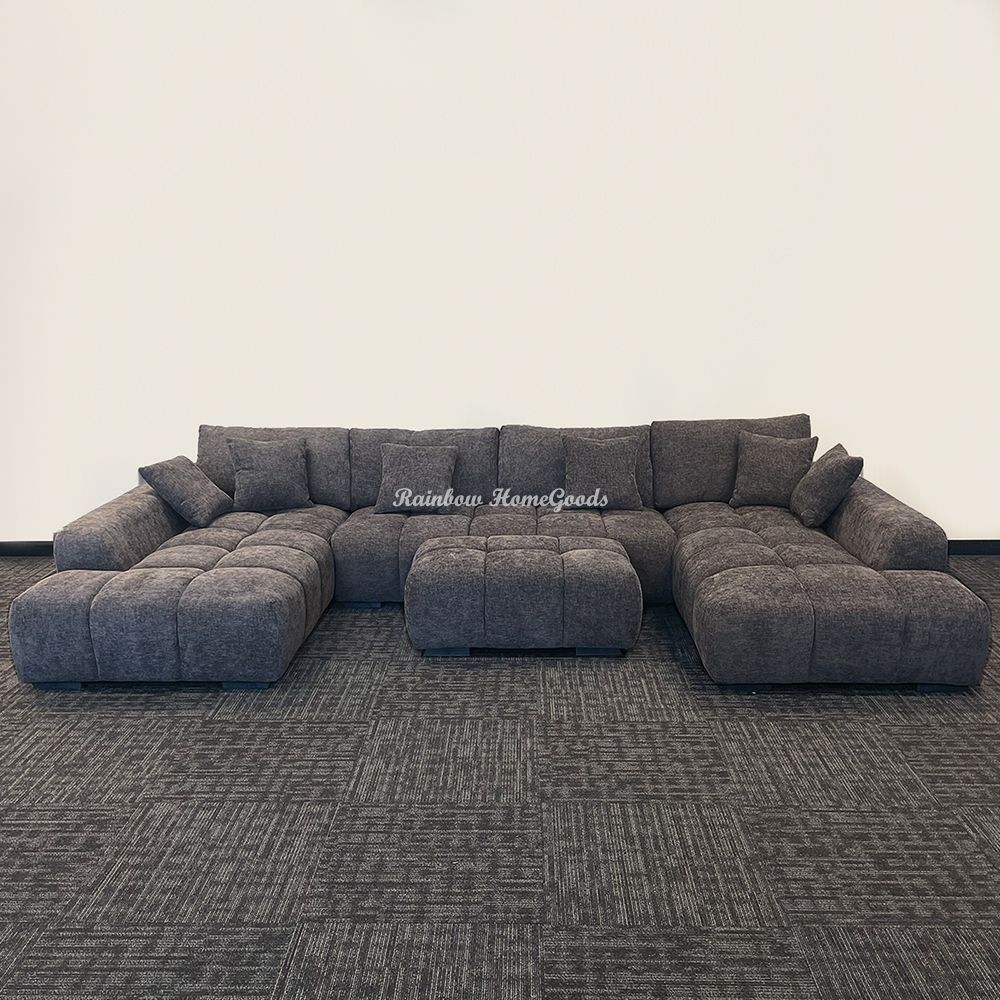Brand New in Sealed Box 143” 4-Pieces Luxury Oversized Tufted Lounge Style U-Shape Modular Double Chaise Sectional Sofa Couch with Ottoman Dimension: 143”W x 82”D x 32”H * See Image for Detail Dimension Features: * Luxurious Lounging * Ultra-Soft Chenille Fabric * Oversized Double Chaises and Large Ottoman * Bread-style Modular Double Chaise Sectional * Wider-channeled Tufted Chaise, Designed for a Sumptuous Sink-in Feel. Visit Our Showroom for More Selections! 5625 Firestone Blvd South Gate, CA 90280 Suite C3