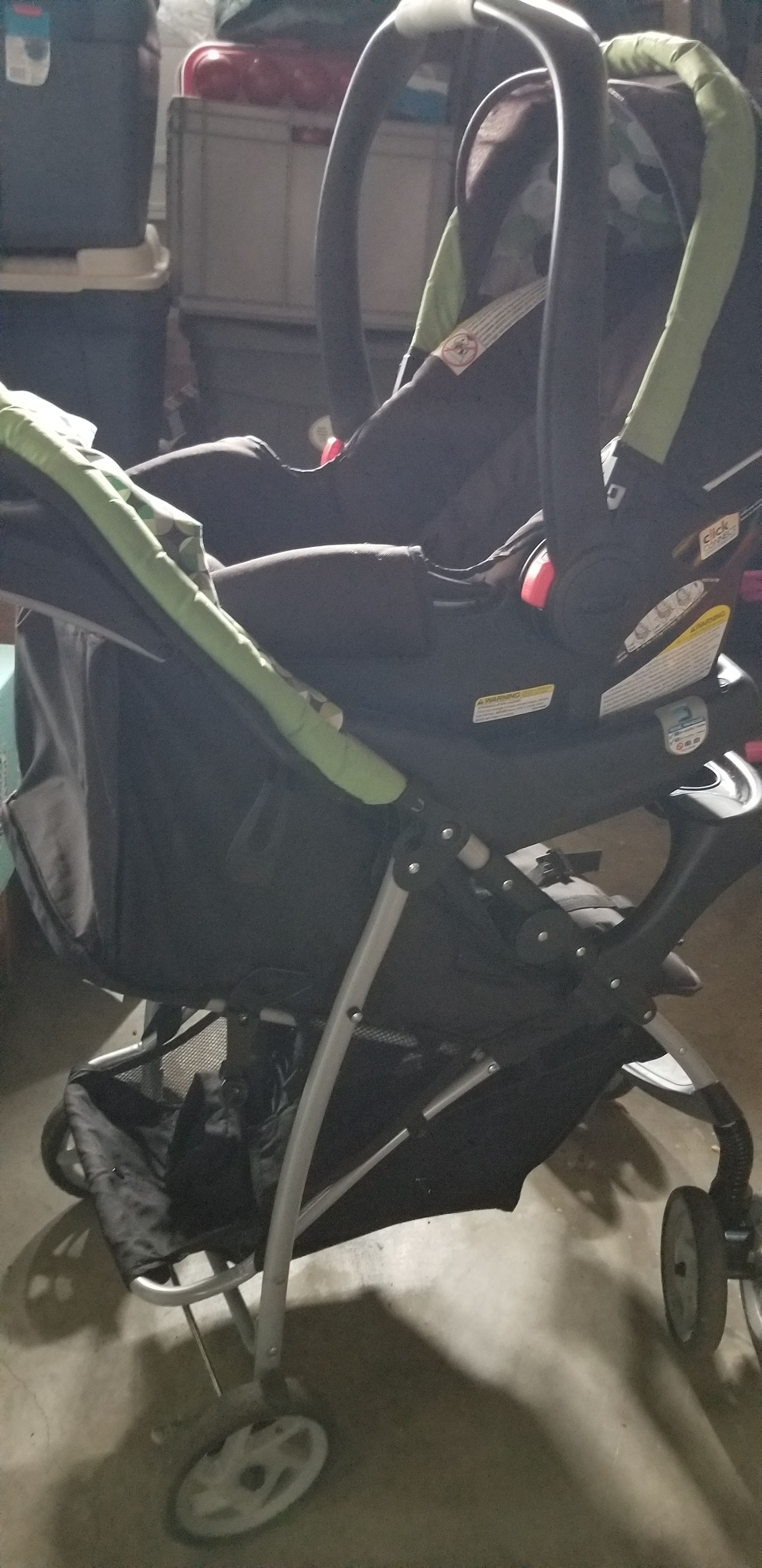 Graco infant carseat and matching stroller. Lime green,gender neutral colors.
