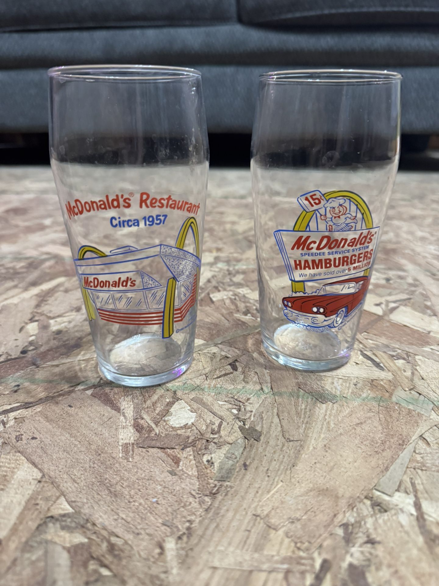 Lot of 2 1995 McDonald’s collectible glasses. 1 speedee service hamburgers and 1 McDonald’s restaurant circa 1957 Excellent shape.