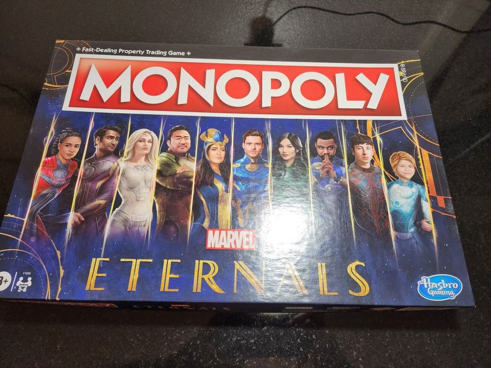 Monopoly Eternals opened and used once. No missing pieces or damages to game or box.