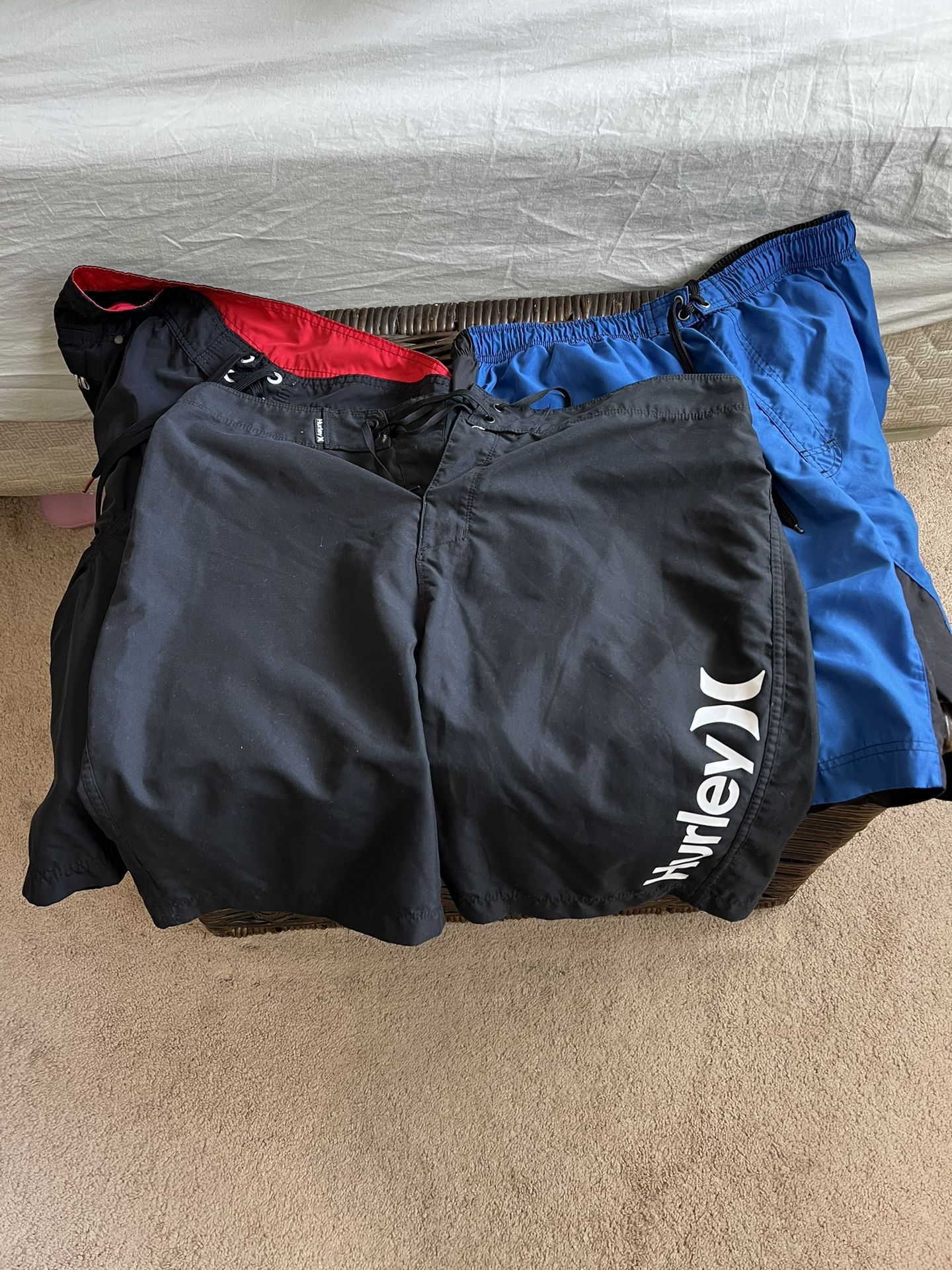 Selling 3 pairs of men’s swim trunks all size 38. All in good shape. Price is for all 3 pairs.