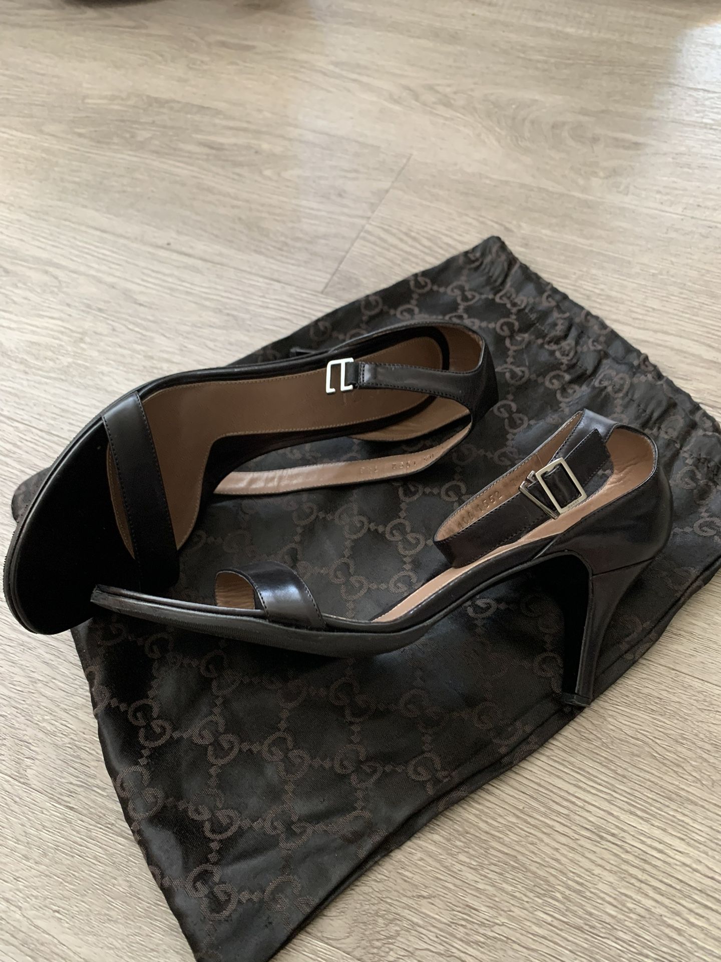 Black color , T straps , cover heels , 2 inches highs. Paid extra for protection on bottom of the shoes & heels. Sizes 7 1/2