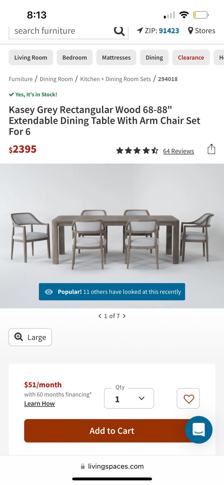 We are moving and will be getting a new table. We purchased less than a year ago, and it was barely used. The set is in amazing Condition. With tax it was over 2600 new. We have the extender as well wrapped in the original packaging from living spaces. Dimensions are: Table - 68-88"W x 42"D x 30"H Dining Chair - 23.2"W x 22.25"D x 33"H