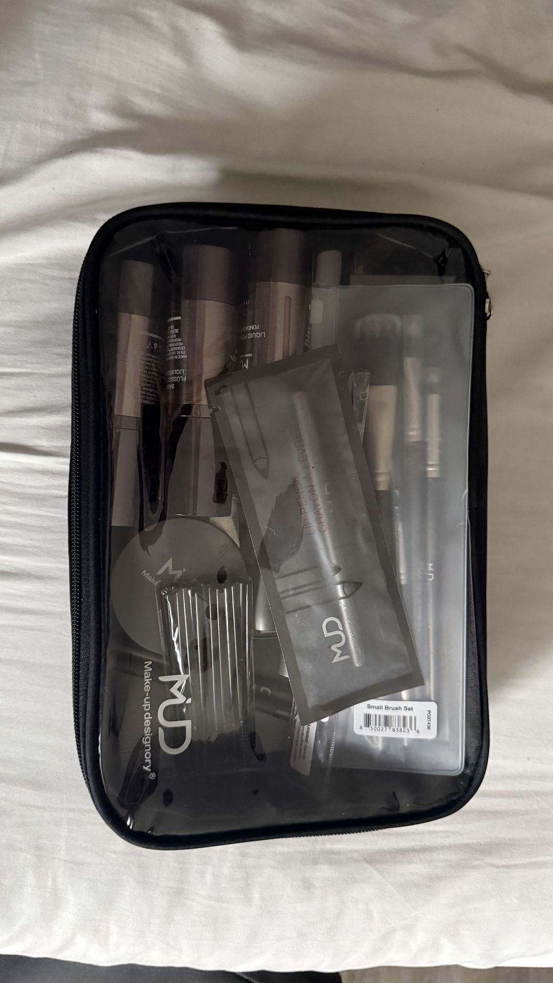 selling MUD makeup kit. gently used! includes - 2 lip liners - eyeliner - 6 different foundation shades - translucent powder - blush (2 different colors) - eyeshadow pallet - 4 makeup brushes - scraper - makeup pallet - rectangle sponges - mascara - 3 different shades of lipsticks