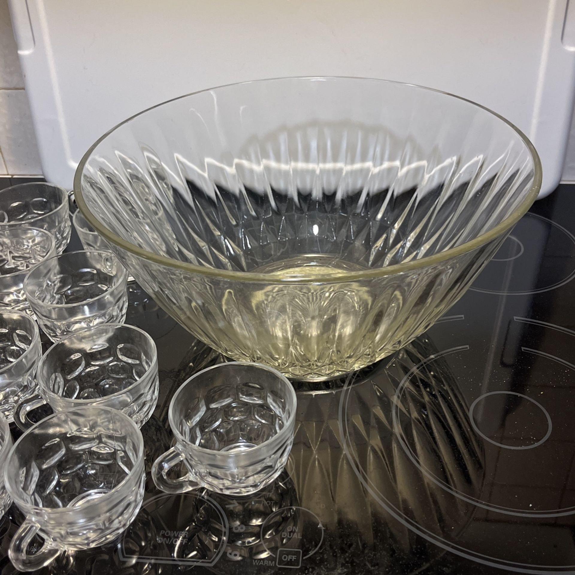 Vintage Glass Punch Bowl With 12 Cups And Hooks