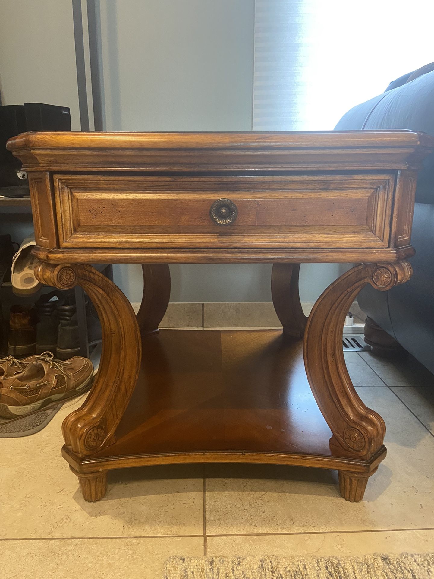 Very sturdy wood tables from lazyboy store great quality 3 tables total