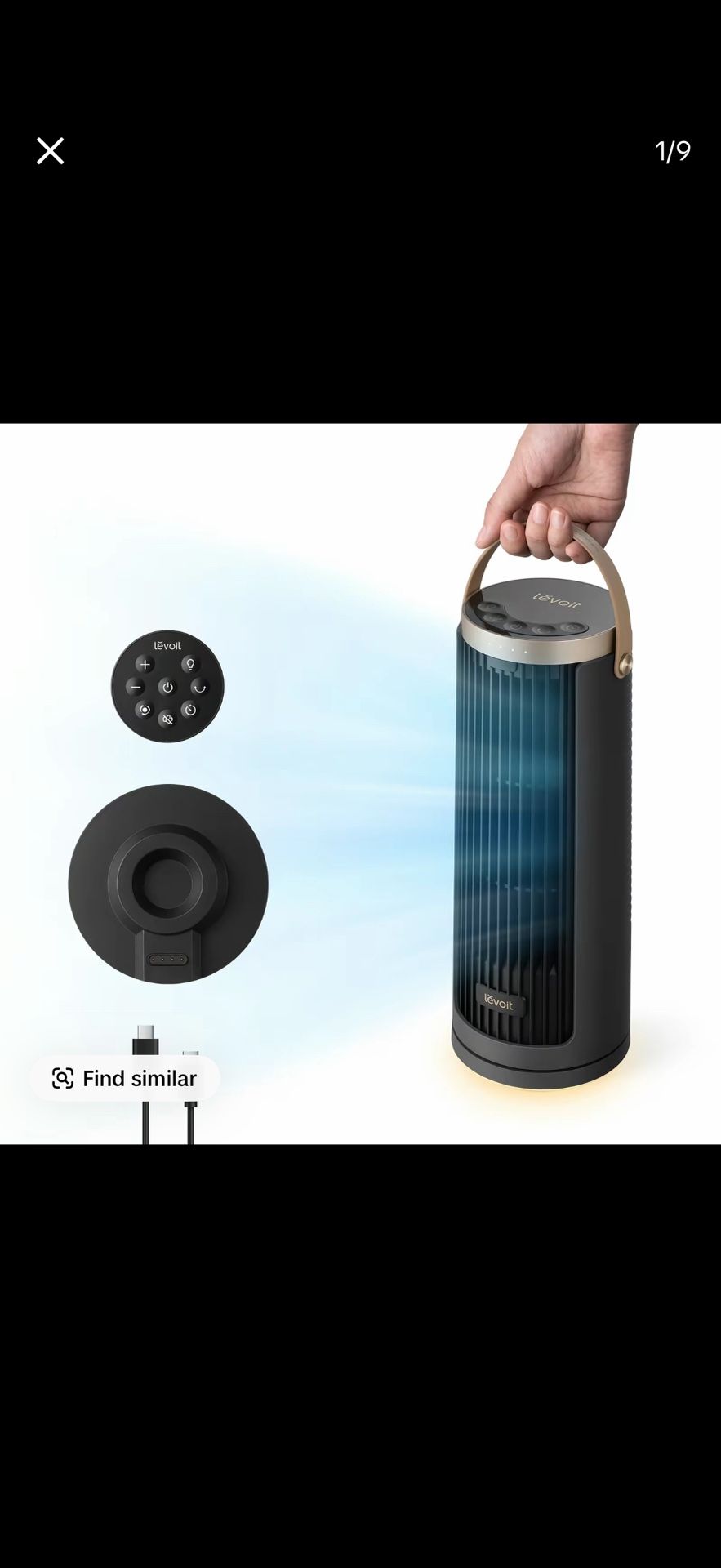 LEVOIT Mini Tower Fan Pro, Portable, Up to 20H Runtime, 5 Speeds + Turbo, 0–90° Oscillation, 20dB Quiet DC Motor, 23 ft/s Airflow, 2-Level Night Light, Foldable Charging Base, Timer 2/4/8/12H