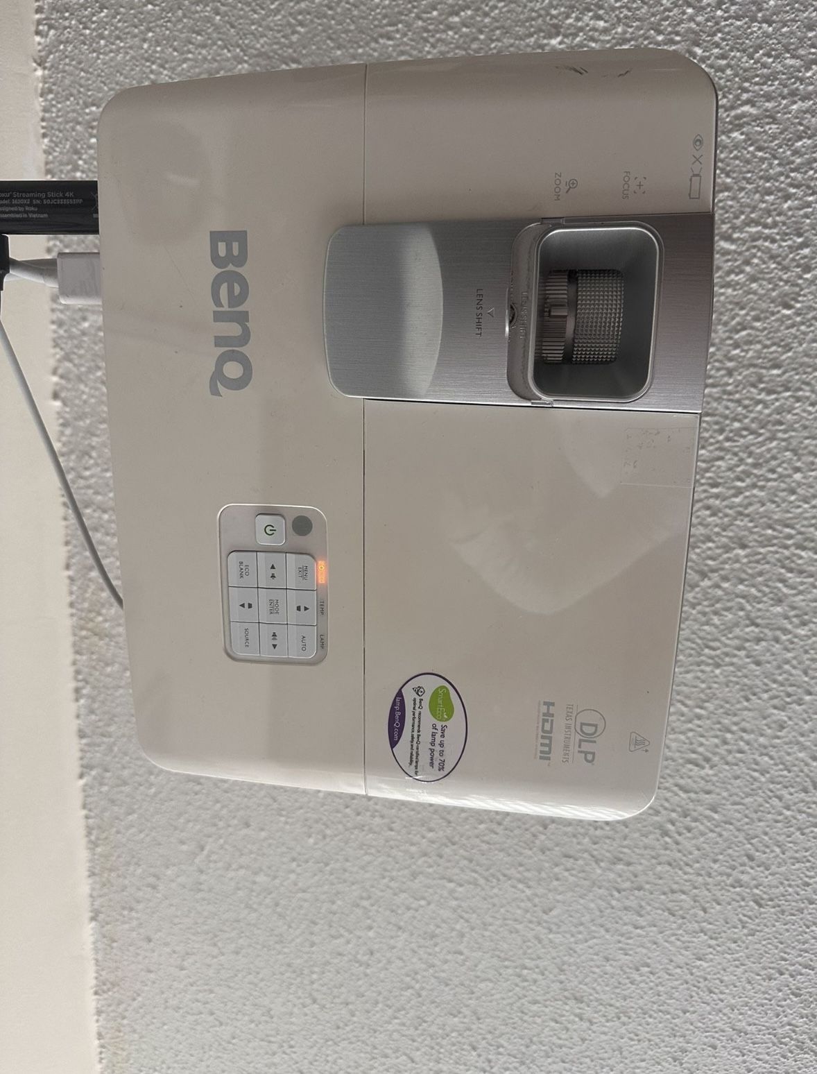 Fully functional and well-maintained. Works great with both ceiling mounts or tabletop/floor setups. This BenQ Full HD 3D projector, is known for its crisp, bright picture and stunning 3D performance. Comes from a smoke-free, pet-free home .